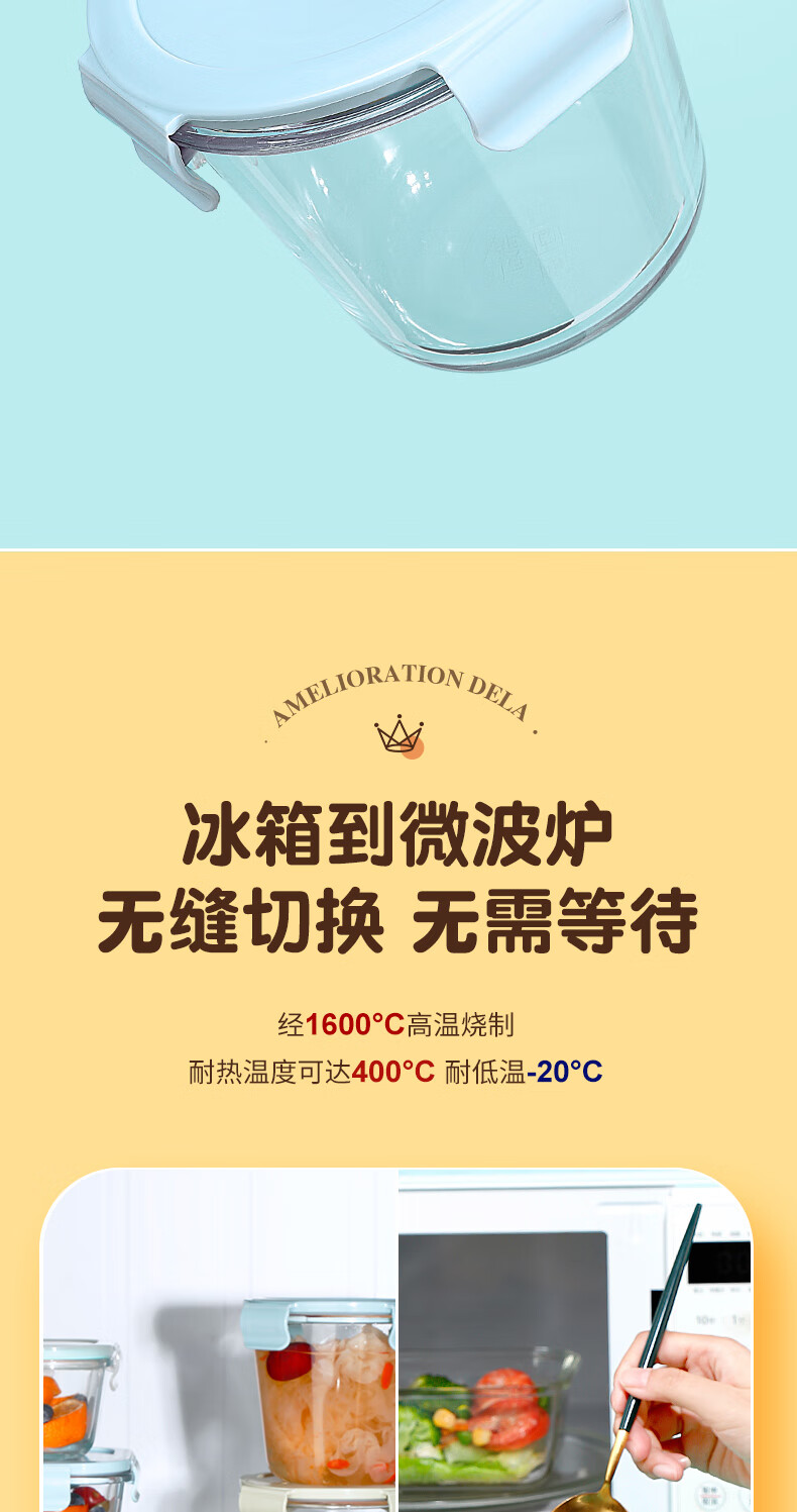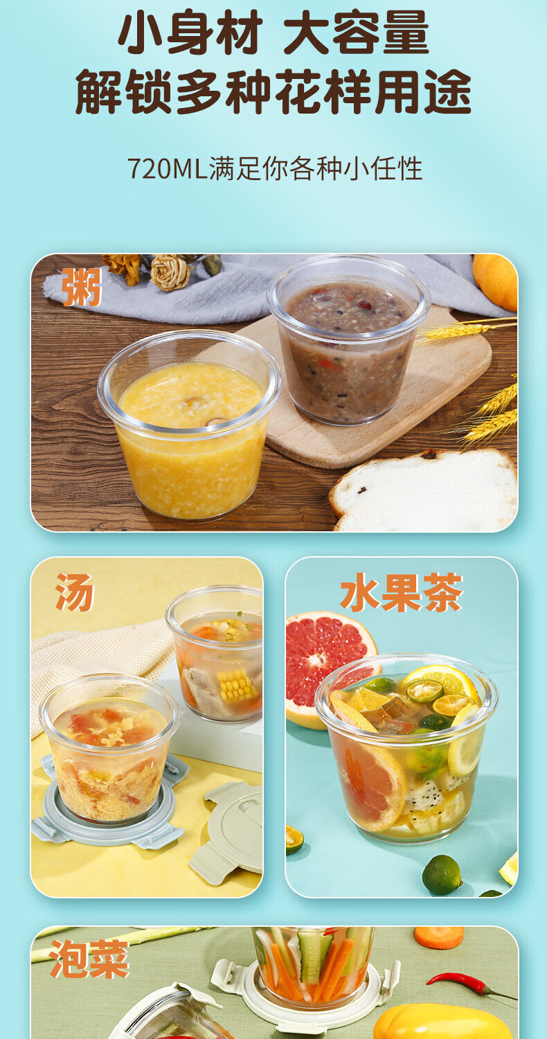 商品名称: 希乐扣Cilock玻璃饭盒上班族带饭 家用带盖汤杯便携密封学生微波炉蓝汤碗720ml 中号汤碗/个
