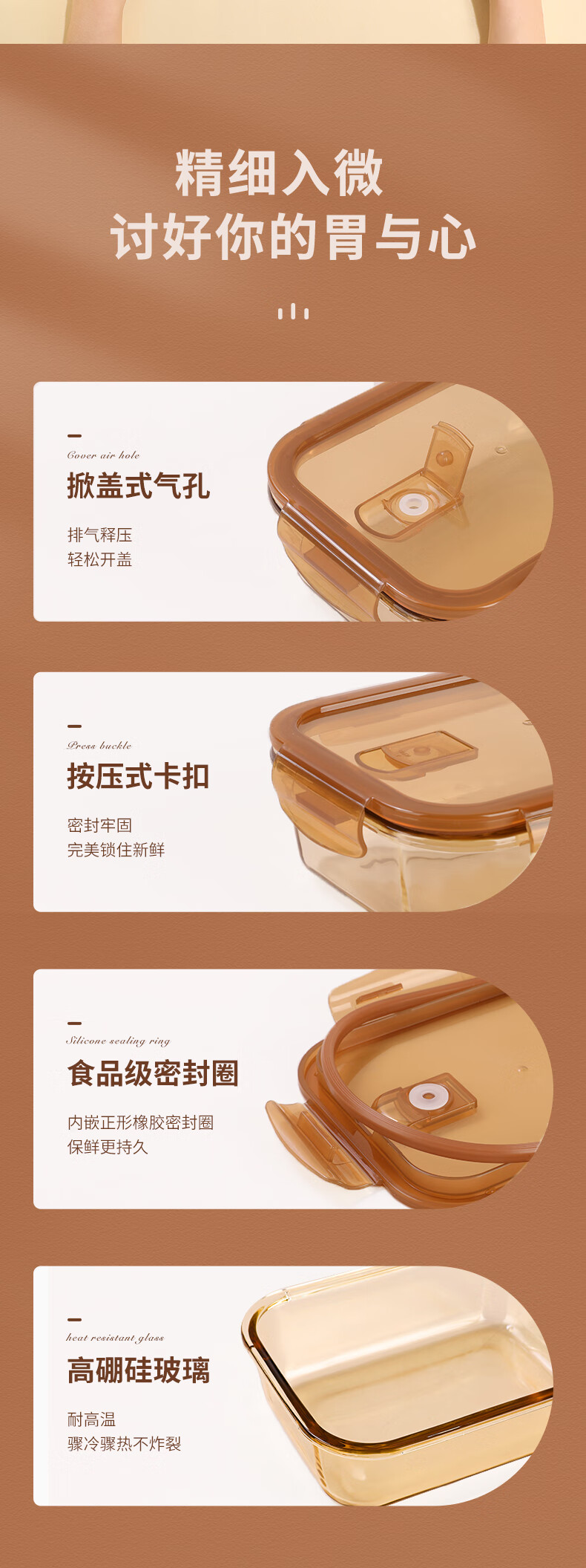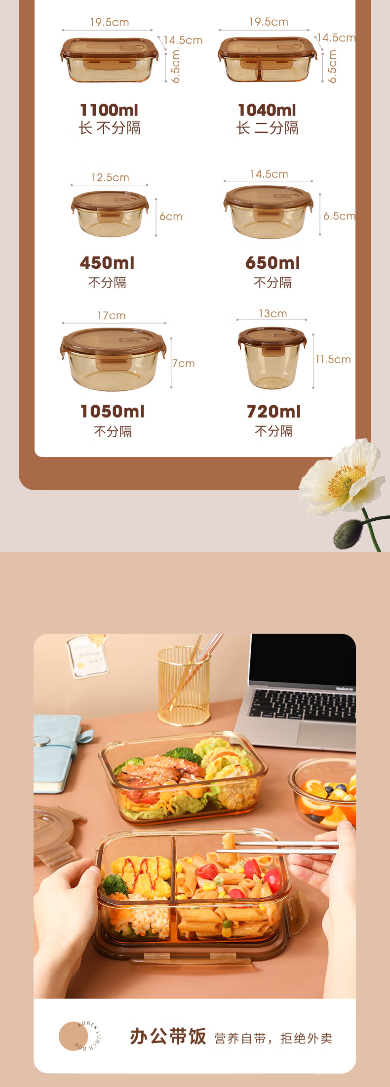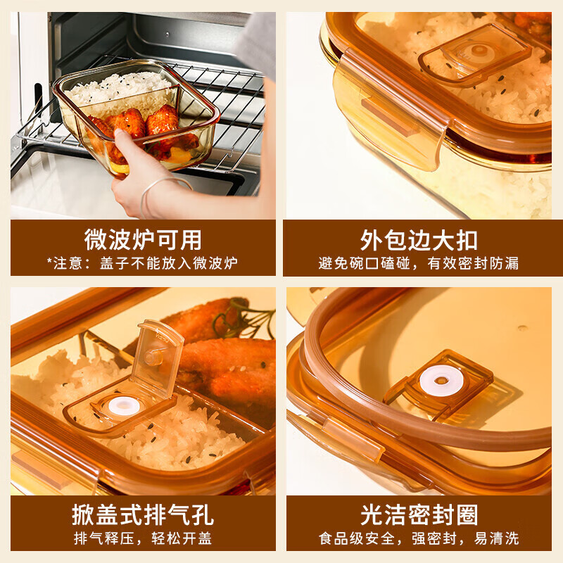 • 商品名称:希乐扣Cilock耐热玻璃饭盒上班族带饭 微波炉可加热保鲜盒保鲜碗便当盒餐盒 琥珀分隔大长/个