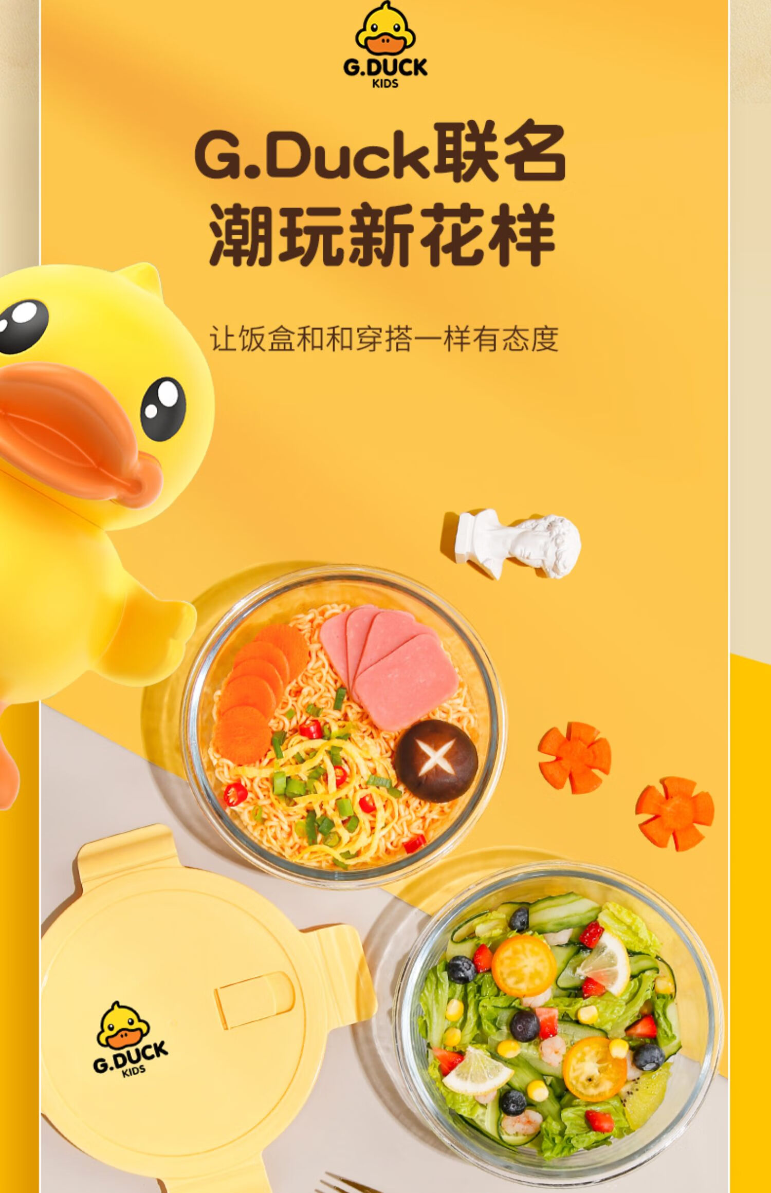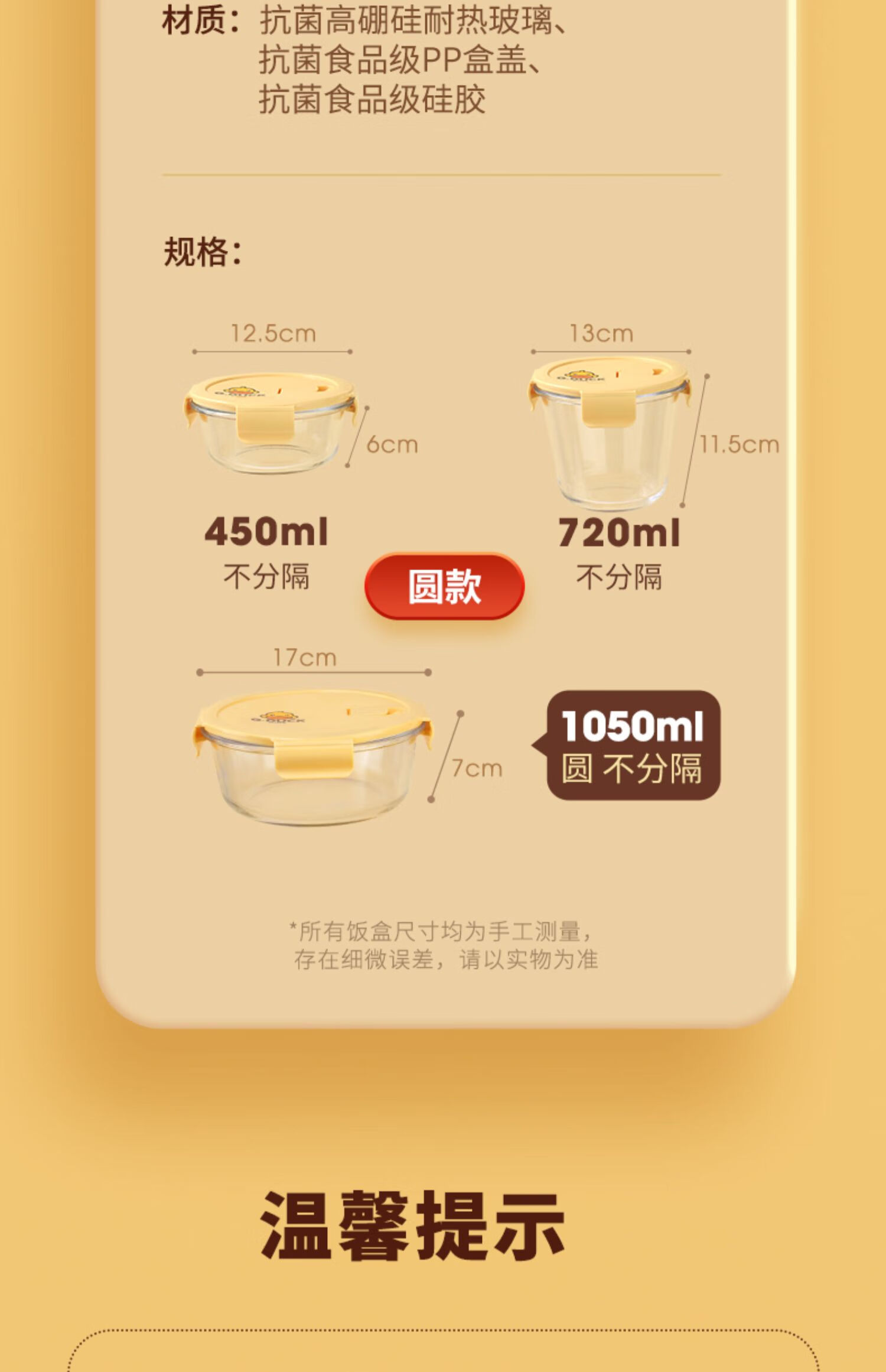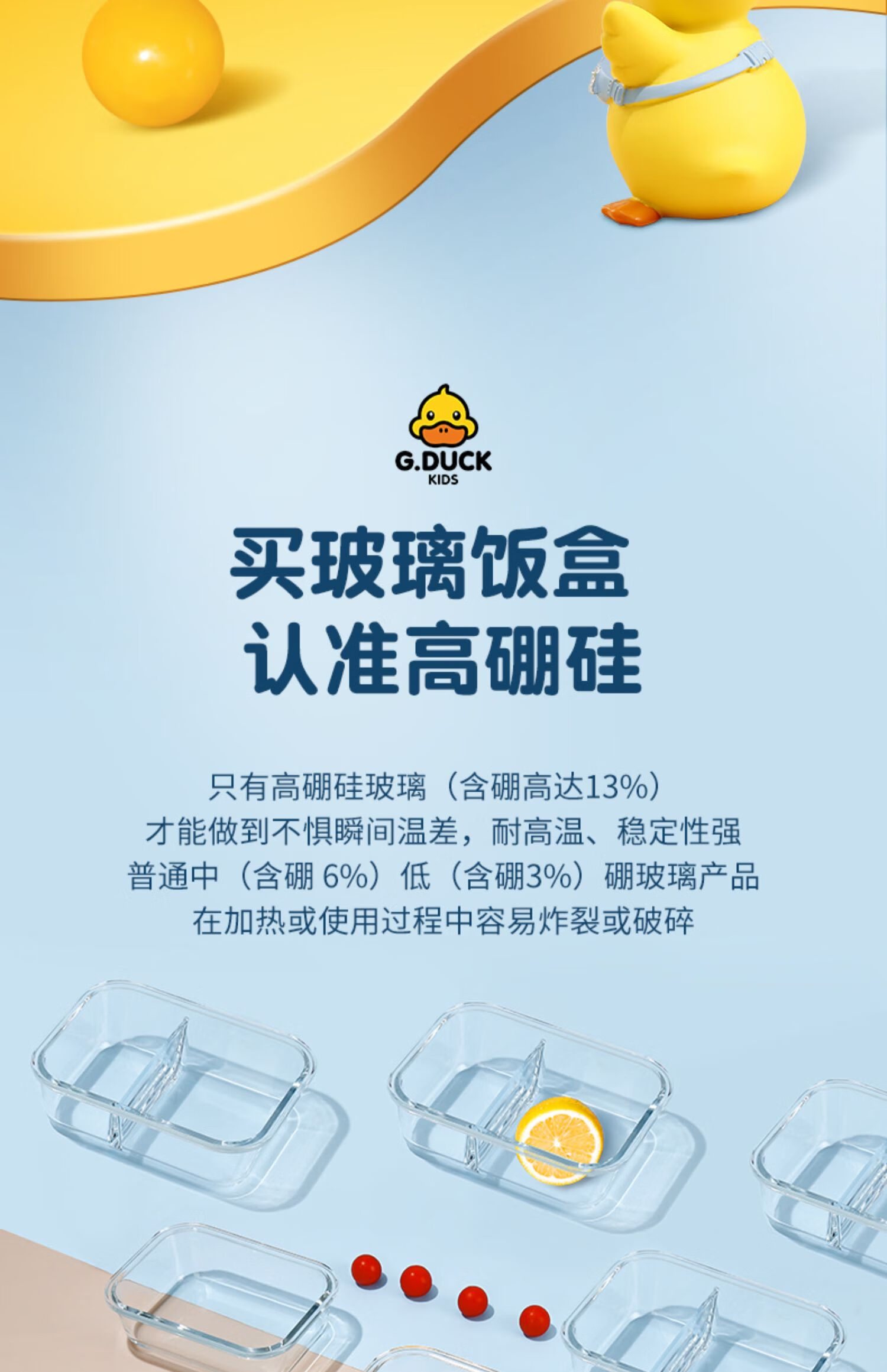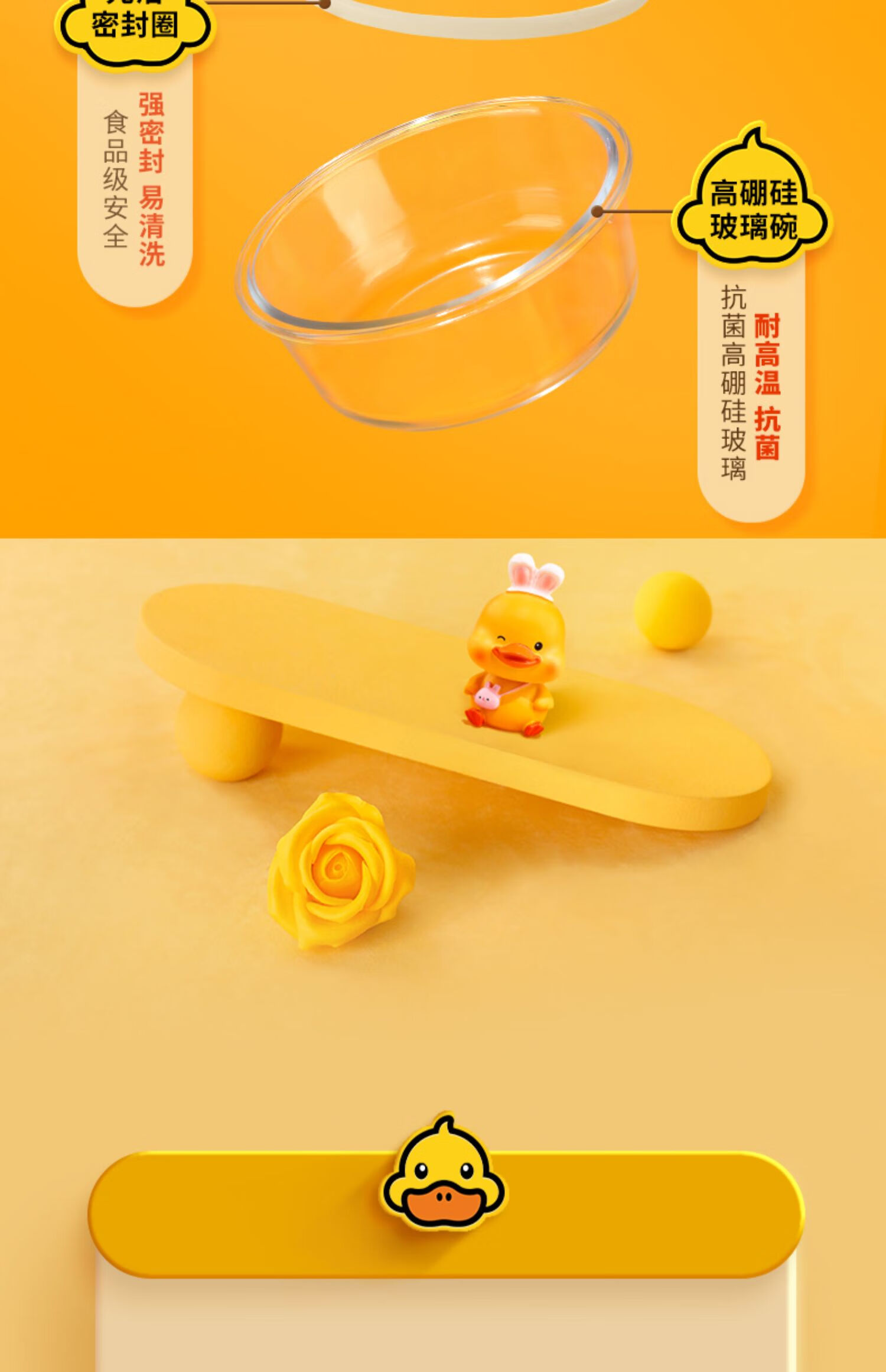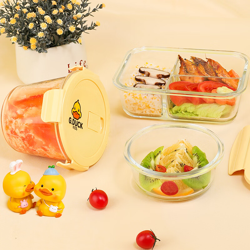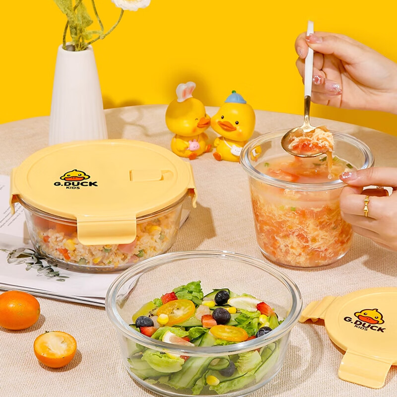 商品名称: 希乐扣Cilock小黄鸭耐热饭盒上班族微波炉可加热大容量玻璃保鲜盒餐盒大圆形*2 小黄鸭系列/套