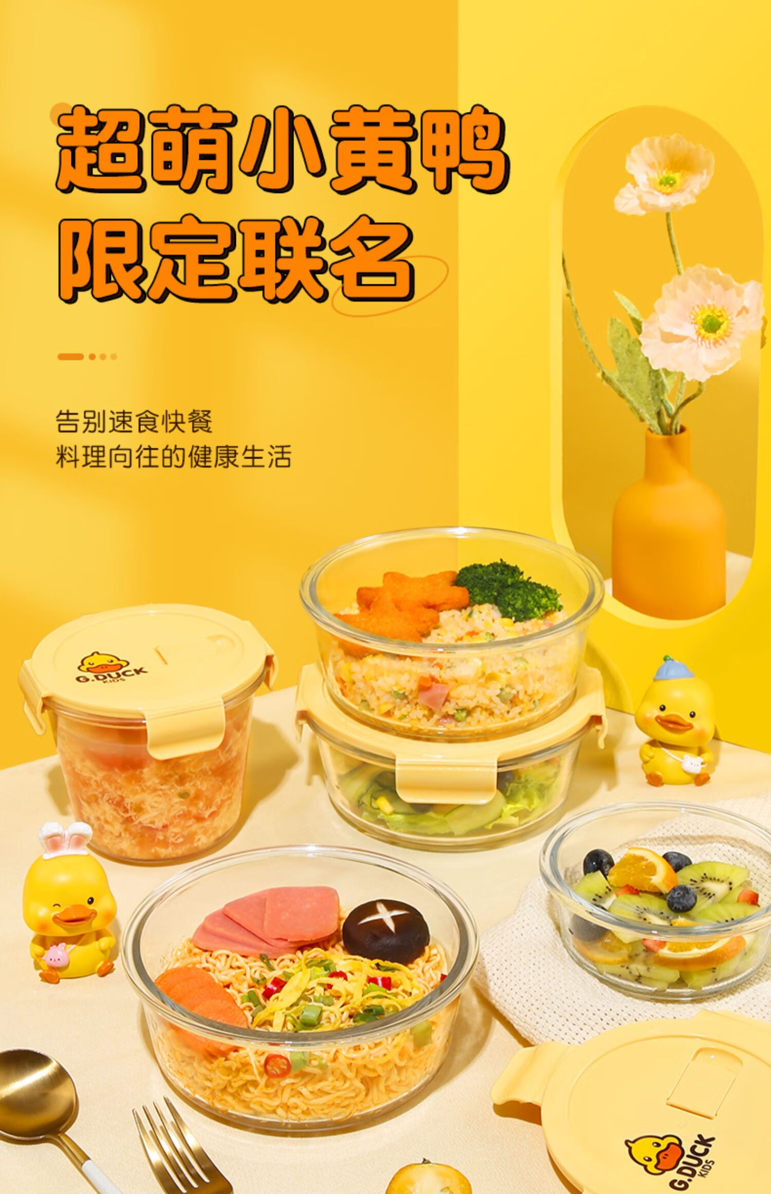 厨具  > 厨房储物  > 保鲜盒  >  希乐扣Cilock  >  希乐扣Cilock小黄鸭耐热饭盒上班族微波炉可加热大容量玻璃保鲜盒餐盒大圆形*2 小黄鸭系列/套