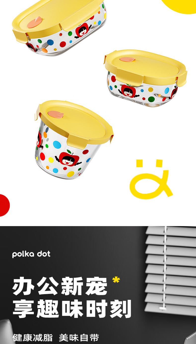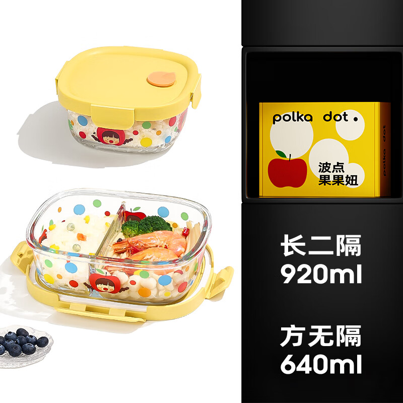 • 商品名称:希乐扣Cilock耐热玻璃饭盒上班族带饭餐盒便当盒微波炉可加热 分格保鲜盒 原创波点果果妞保鲜盒/套
