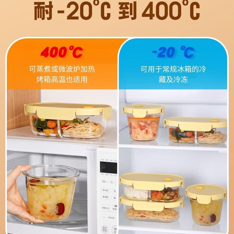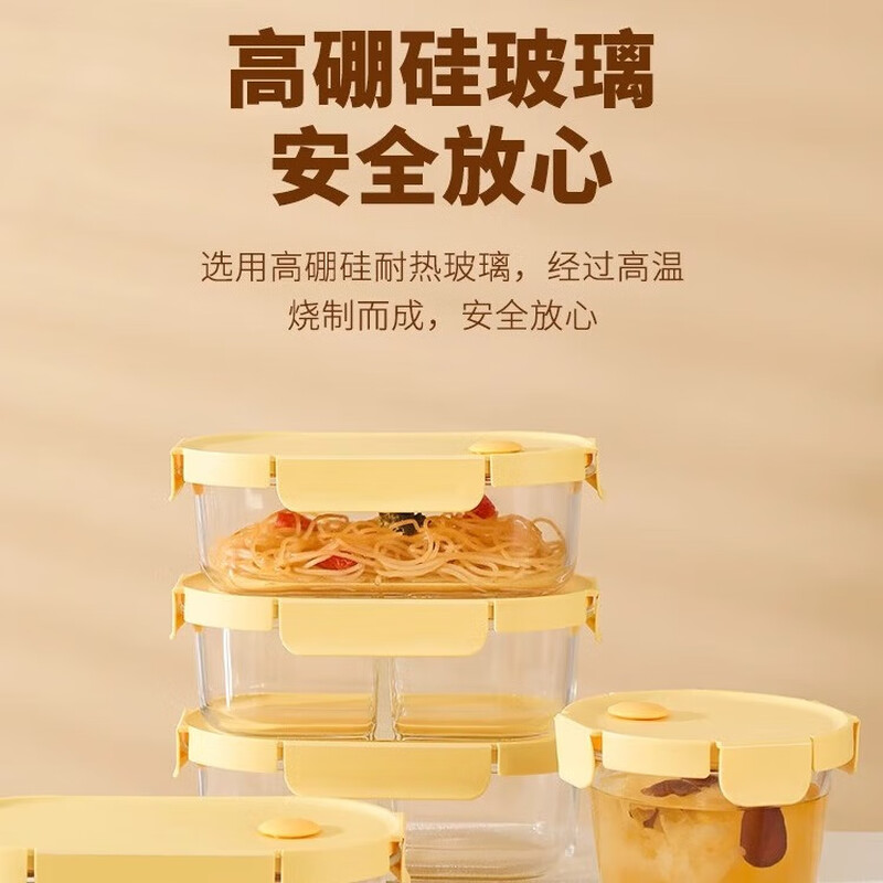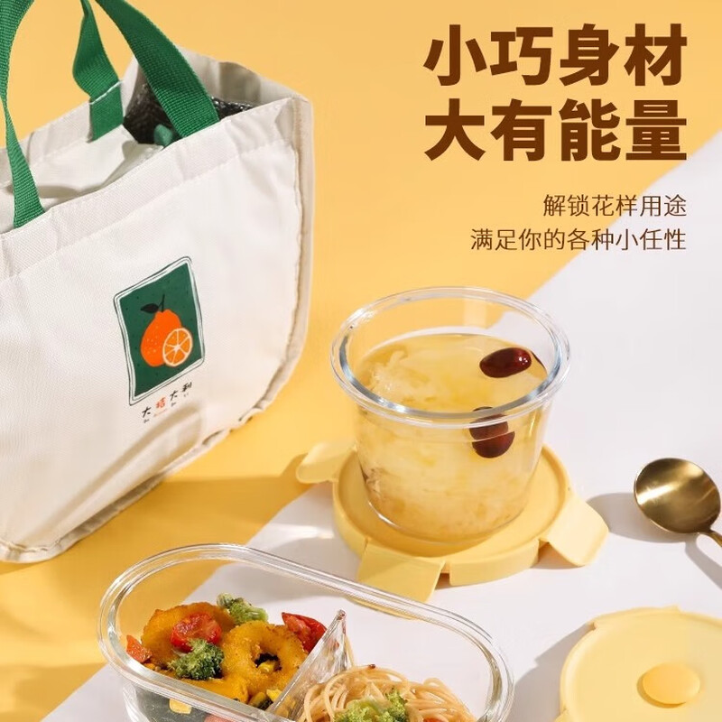 • 商品名称:希乐扣Cilock玻璃饭盒上班族带饭 大容量可微波炉加热汤碗便当盒保鲜盒 4件套 新款黄四件套/个