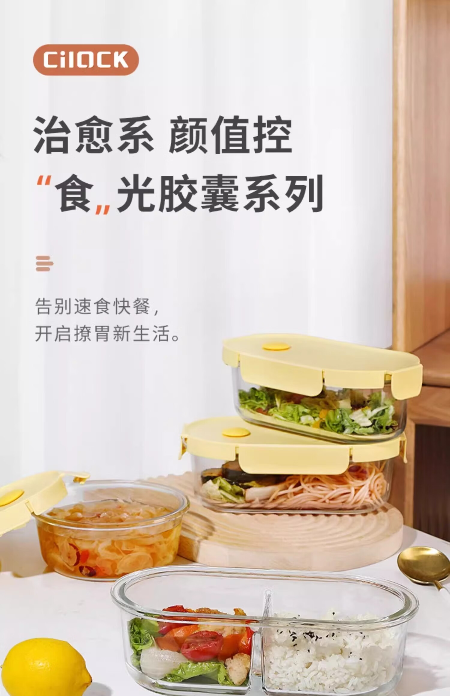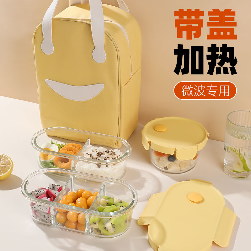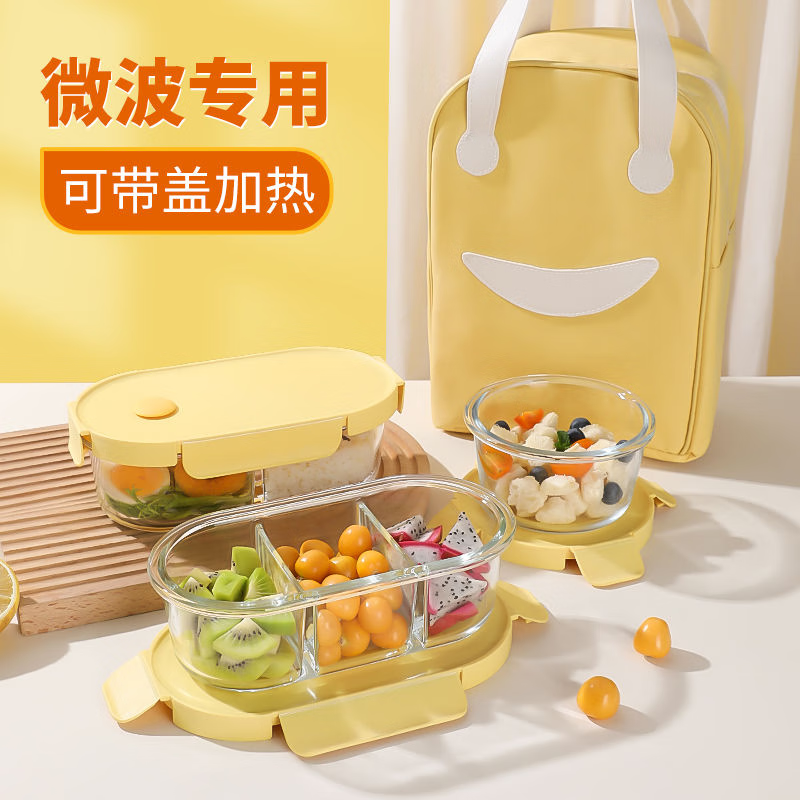 商品名称: 希乐扣Cilock玻璃饭盒上班族带饭 大容量可微波炉加热汤碗便当盒保鲜盒 4件套 新款黄四件套/个
