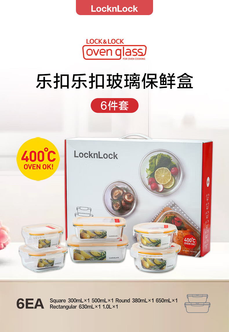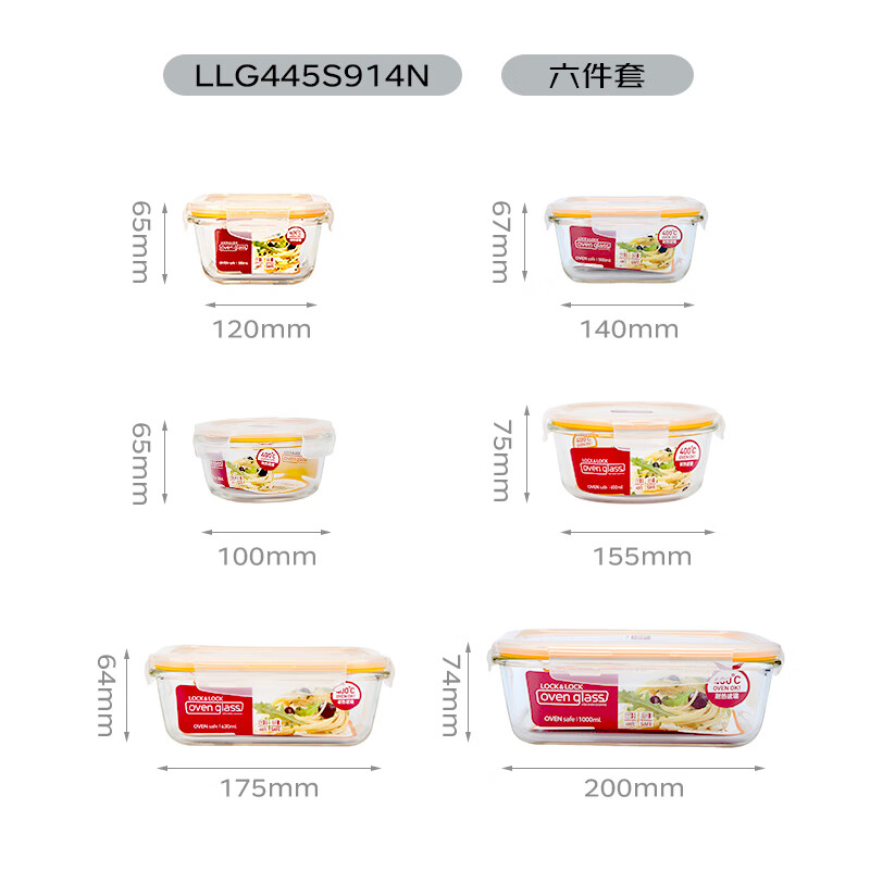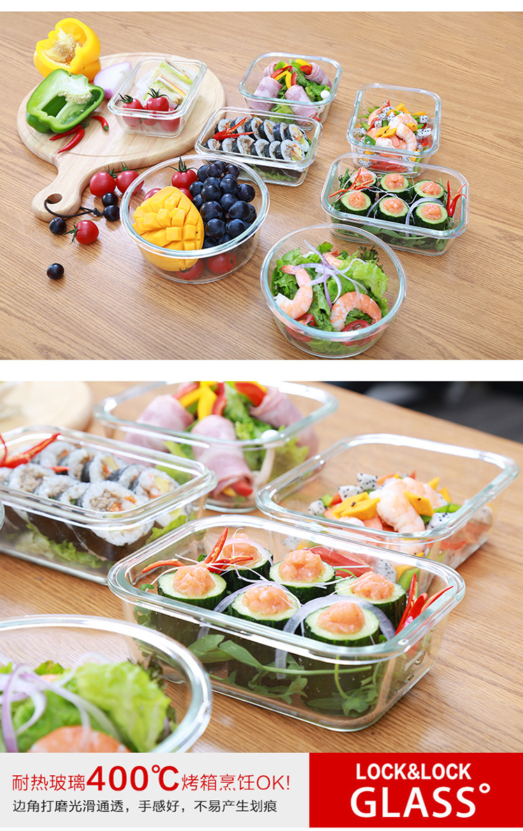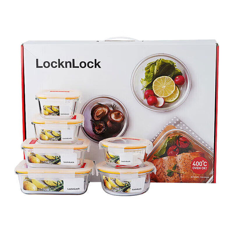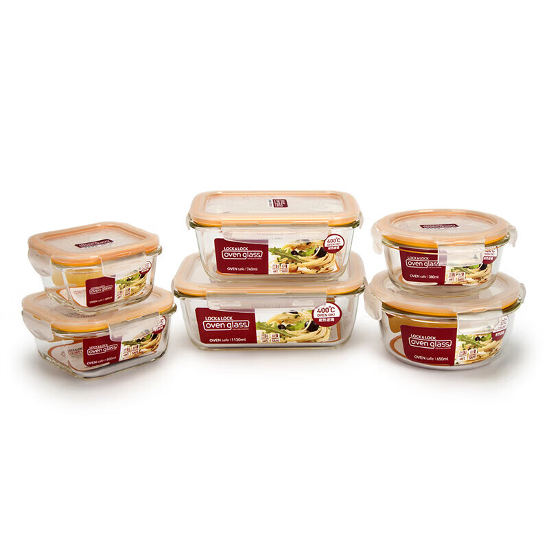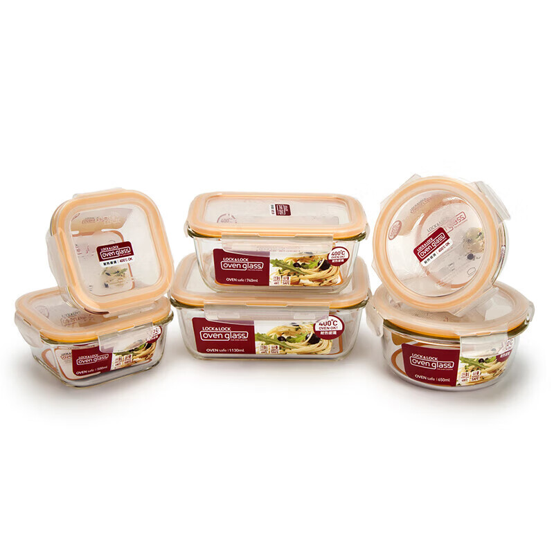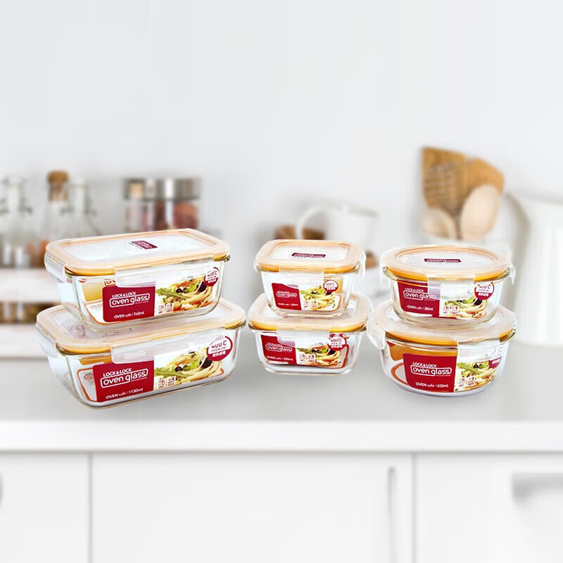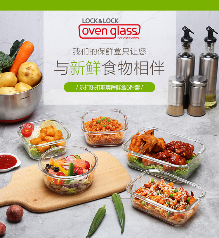 • 商品名称:乐扣乐扣(LOCK&LOCK)耐热玻璃保鲜盒微波炉饭盒上班族便当盒学生水果饭菜餐盒6件套 保鲜盒/套