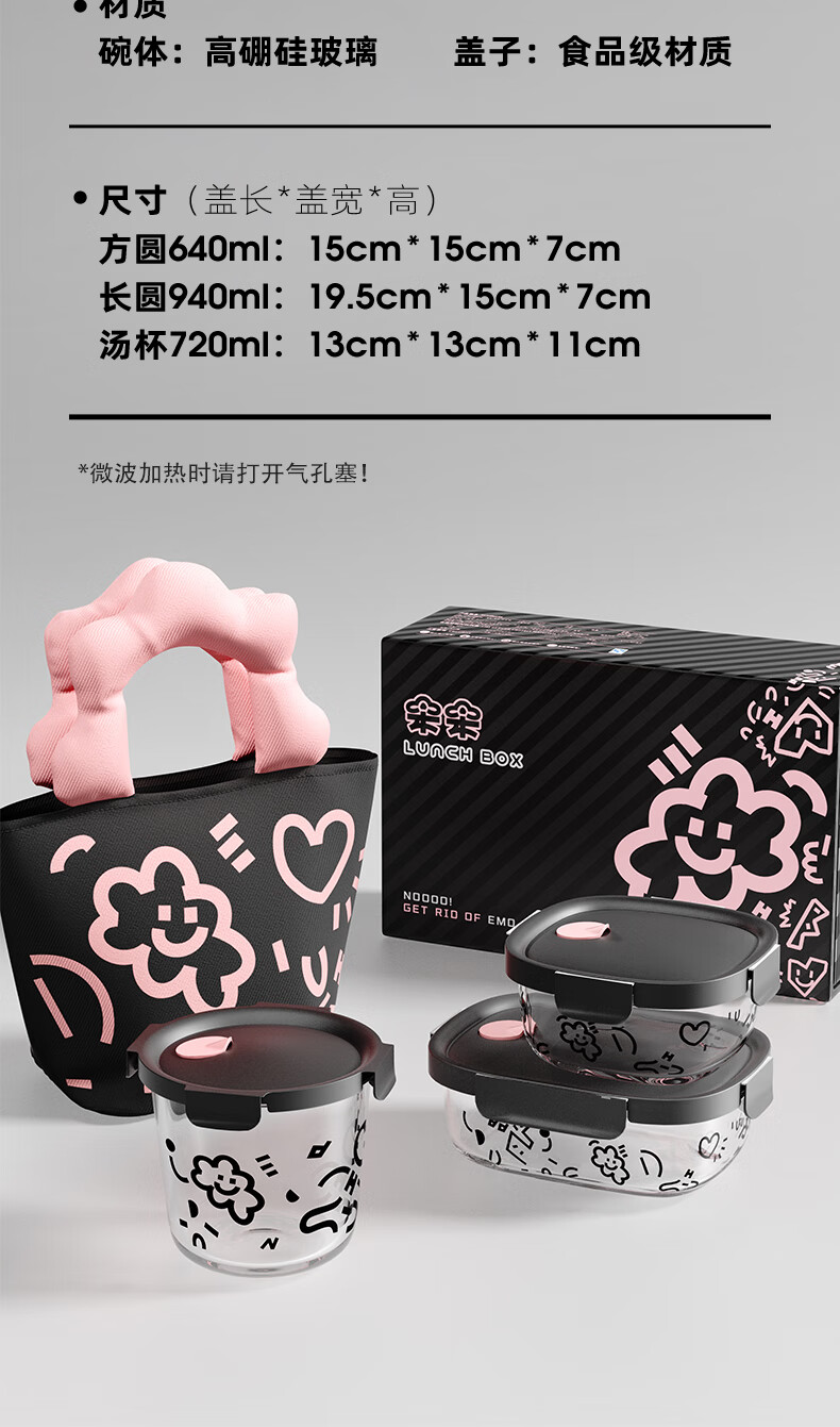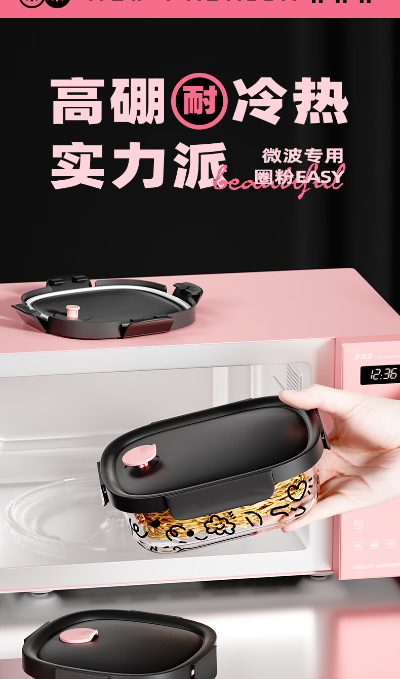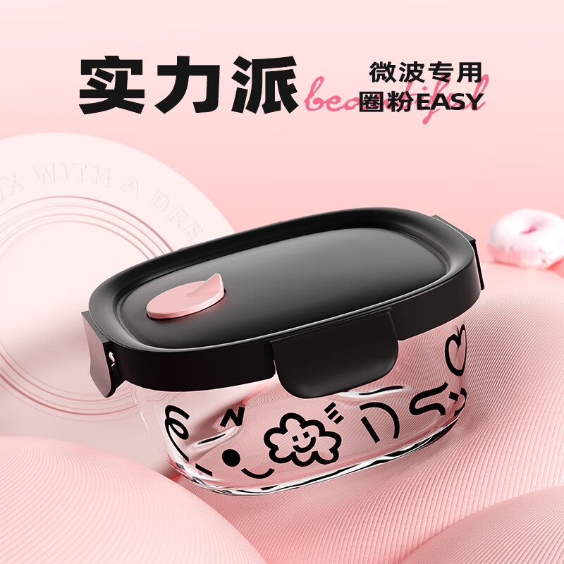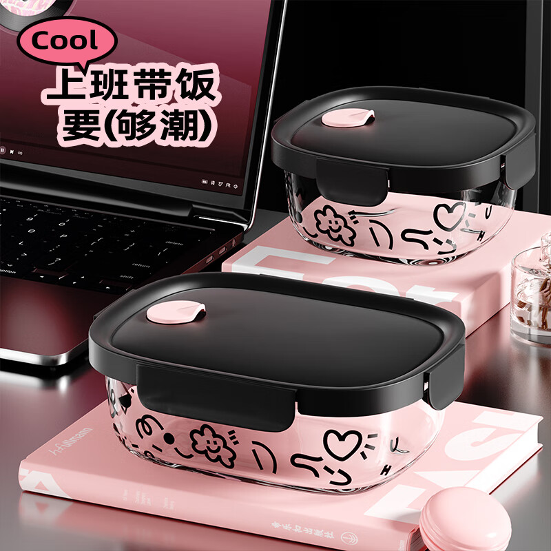 希乐扣玻璃饭盒上班族带饭可微波炉餐盒玻璃保鲜盒冰箱收纳盒 方圆640ml 云朵系列/个
