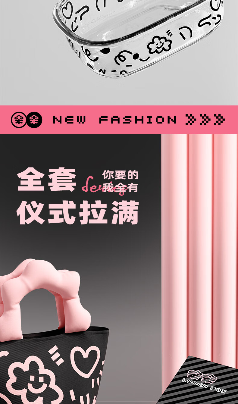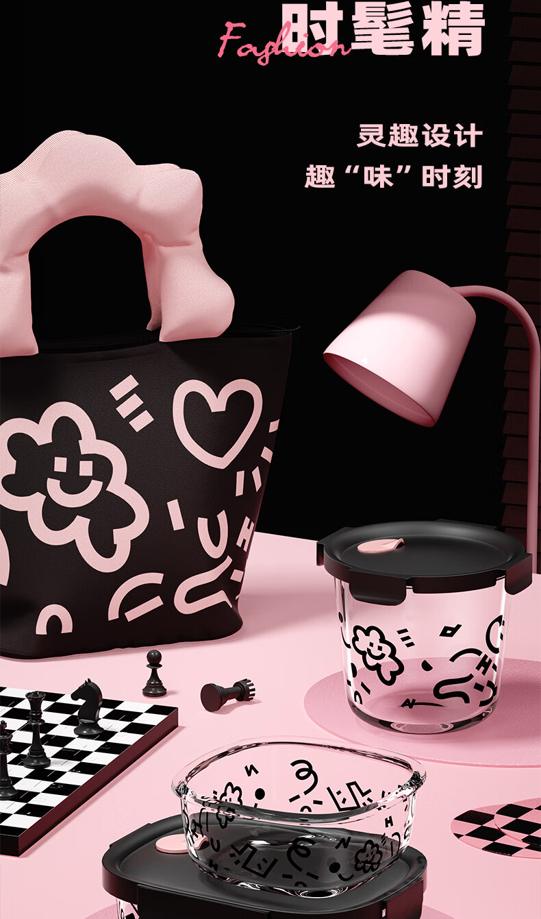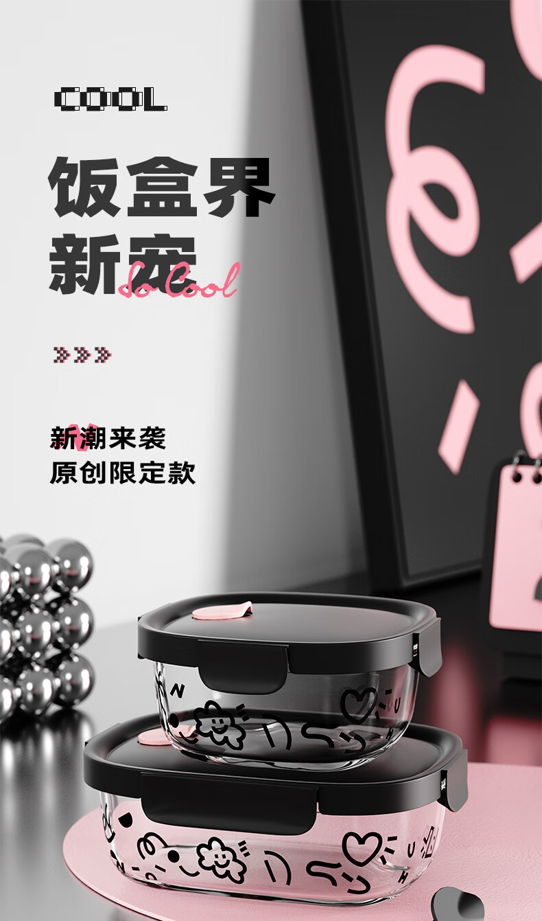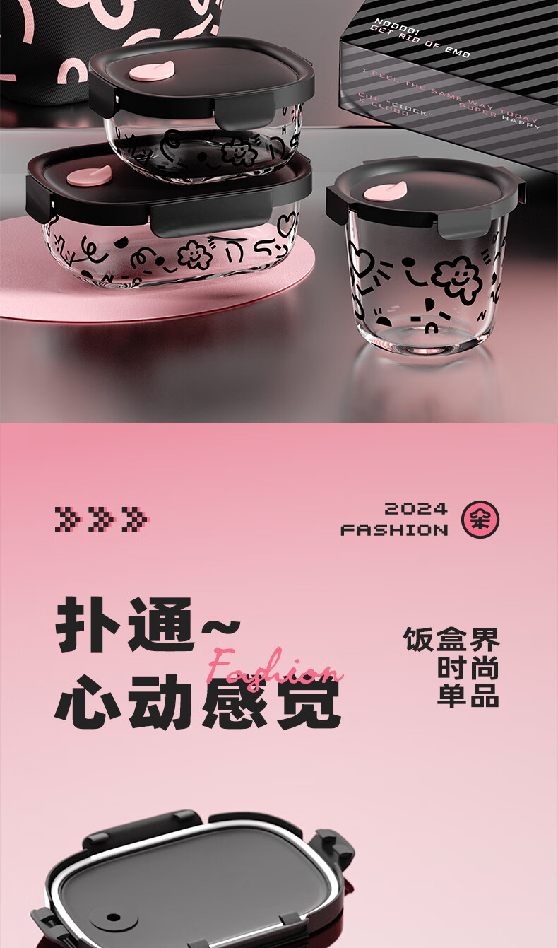 希乐扣玻璃饭盒上班族带饭可微波炉餐盒玻璃保鲜盒冰箱收纳盒 方圆640ml 云朵系列/个