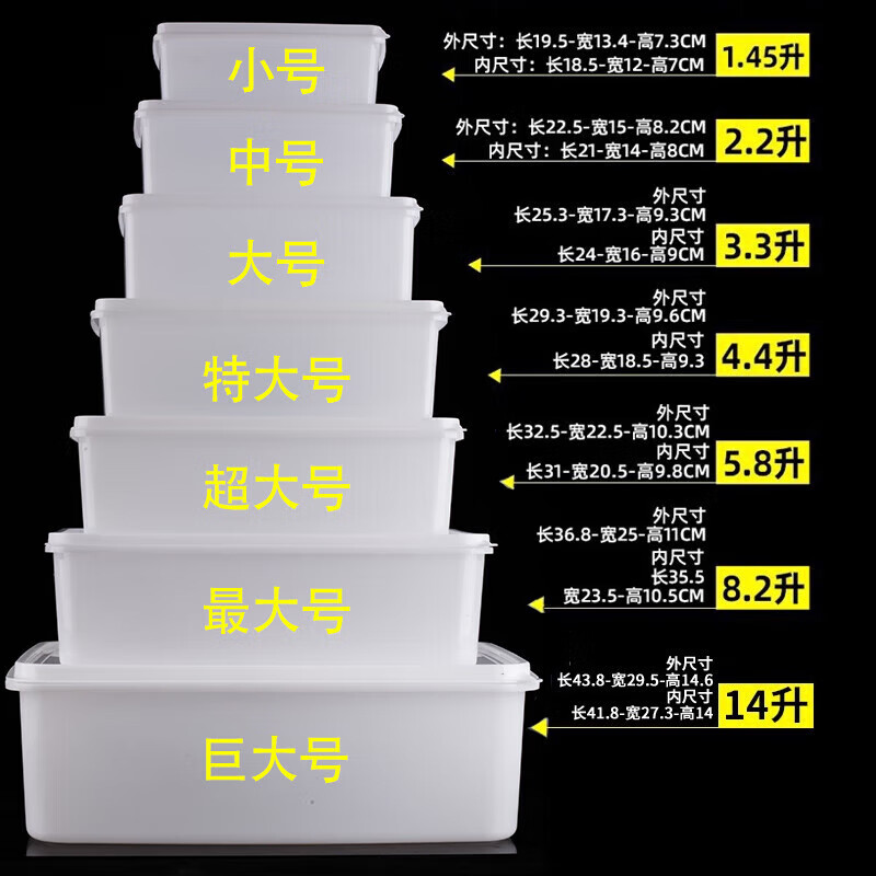 • 商品名称:惠皇 保鲜盒白色带盖塑料密封盒厨房长方形冰箱商用可定制 特大号4.4L 特大号4.4L/个