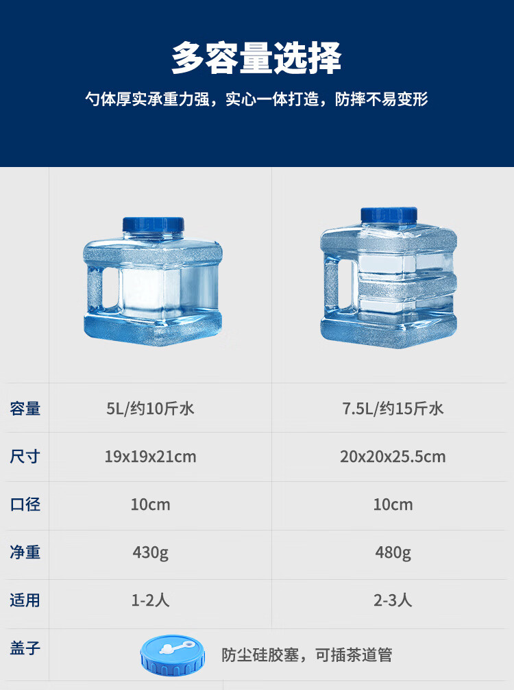 • 商品名称:美厨(maxcook)纯净水桶 矿泉水桶饮水桶 5L塑料水桶茶台吧机水桶宽口 MCX1870 纯净水桶储水桶/个