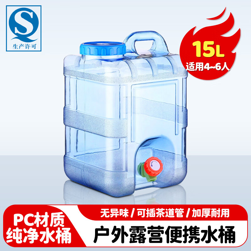商品名称: 美厨(maxcook)纯净水桶 矿泉水桶饮水桶 带龙头15L 自驾游手提户外 方形MCX1863 纯净水桶储水桶/个