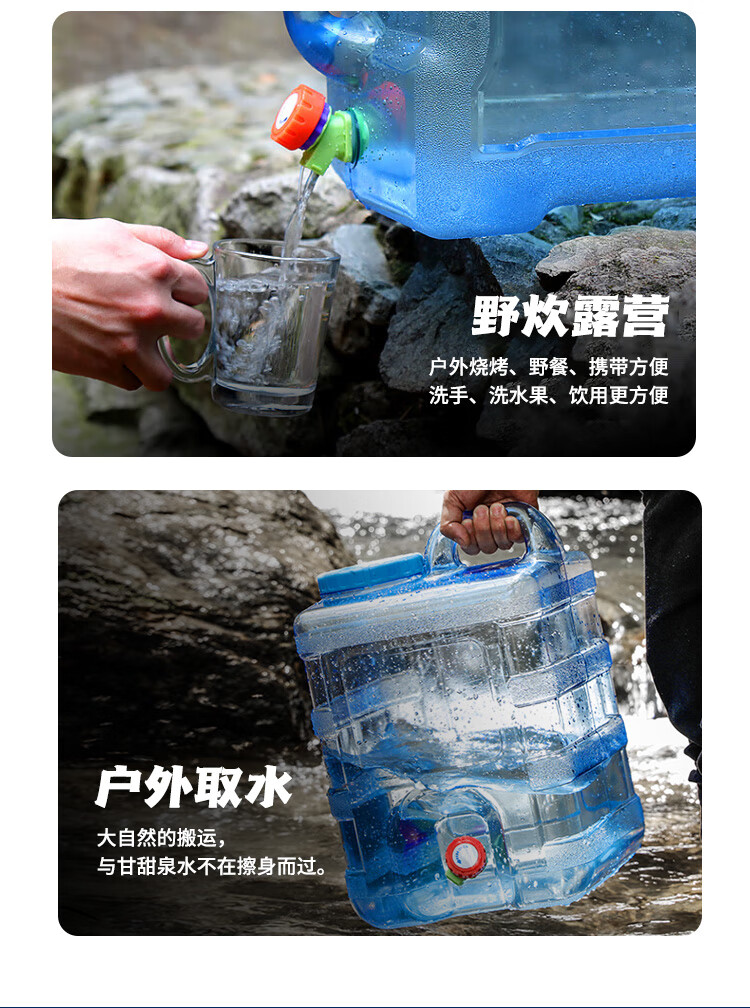 • 商品名称:美厨(maxcook)纯净水桶 矿泉水桶饮水桶 带龙头15L 自驾游手提户外 方形MCX1863 纯净水桶储水桶/个