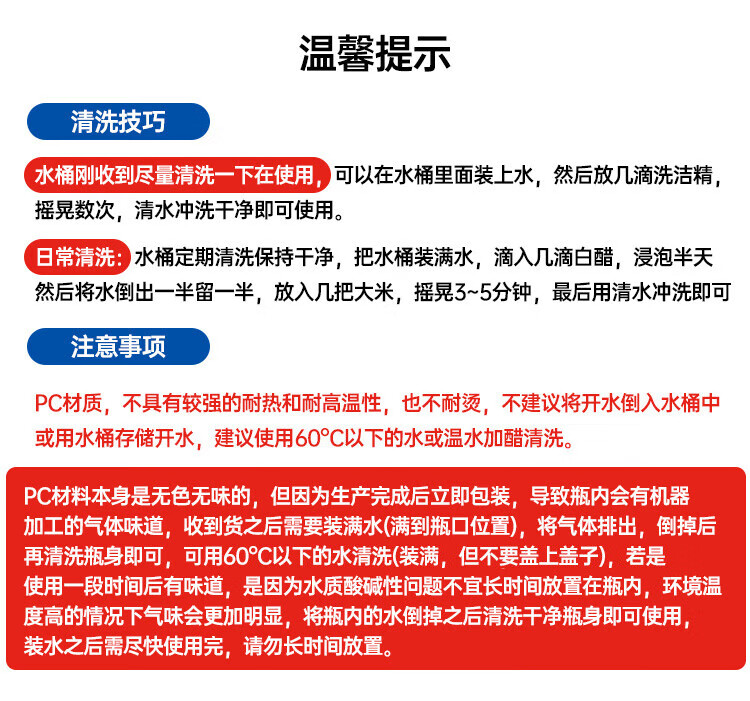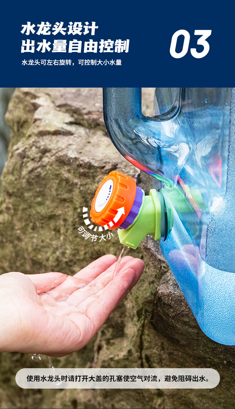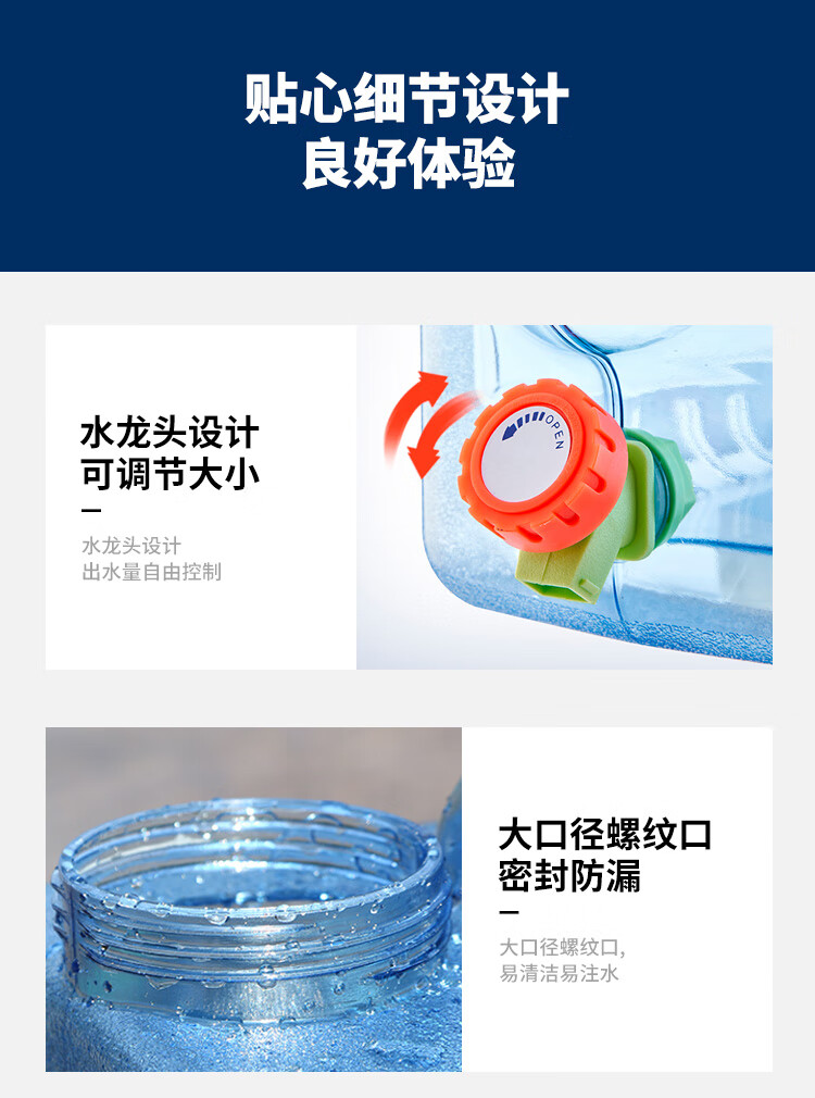 • 商品名称:美厨(MAXCOOK)纯净水桶 矿泉水桶饮水桶 带龙头10L 自驾游手提户外 方形MCX1856 纯净水桶储水桶/个
