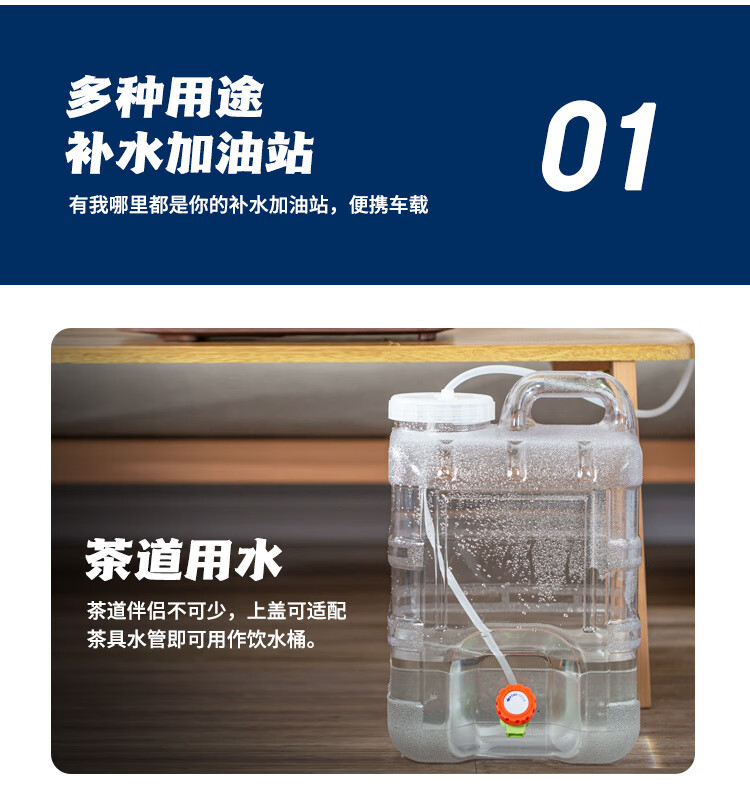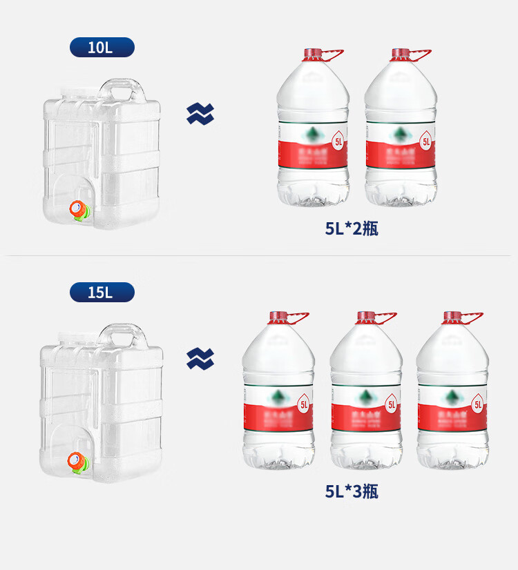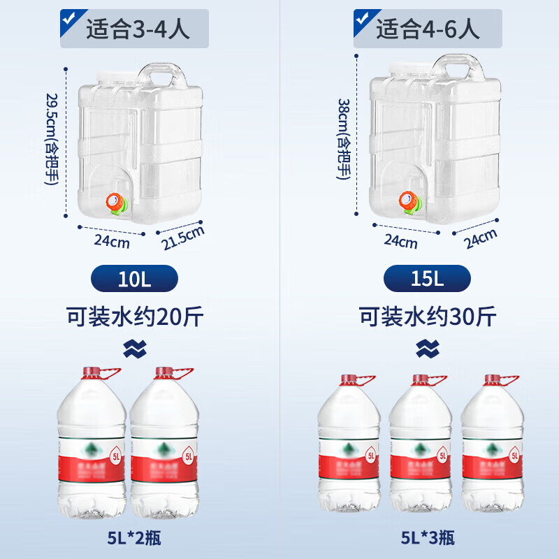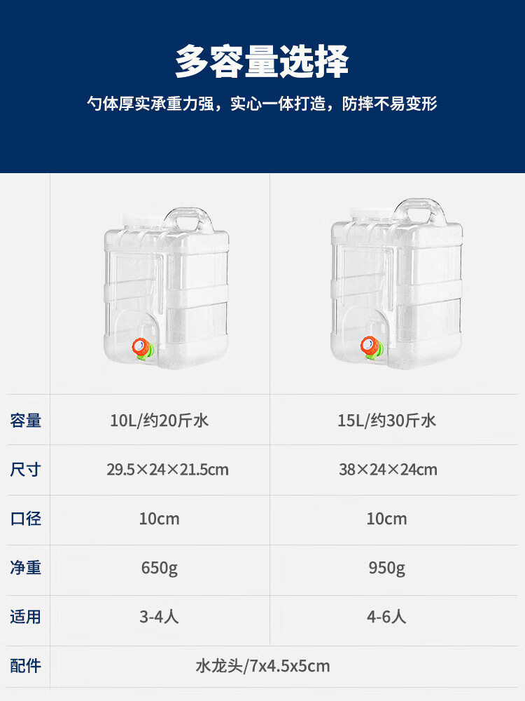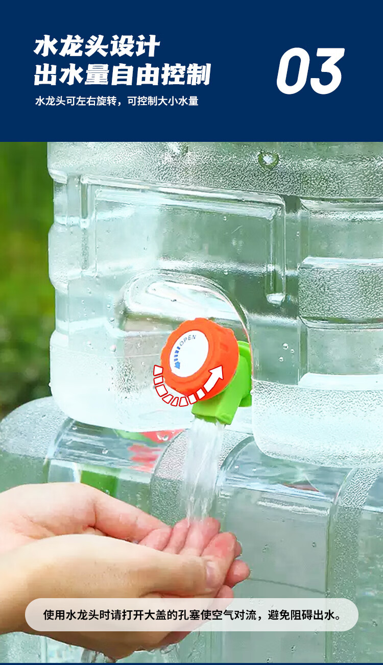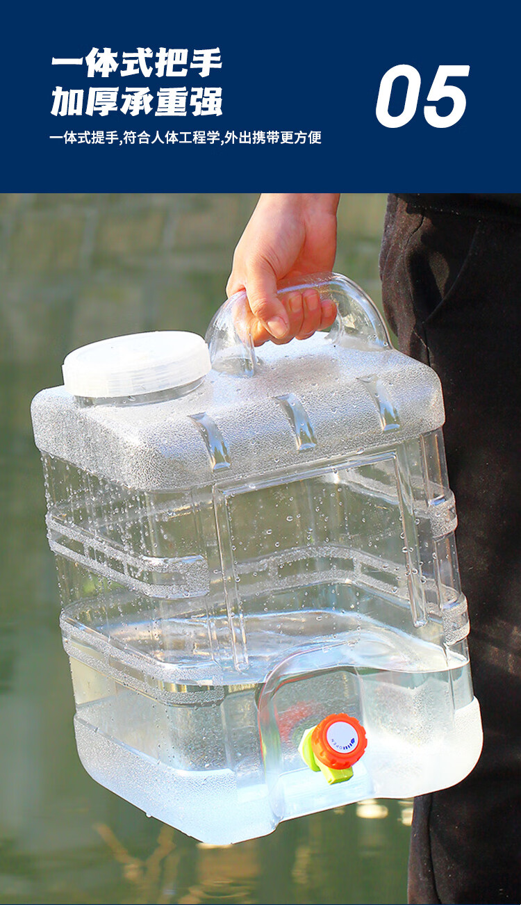 • 商品名称:美厨(MAXCOOK)纯净水桶 矿泉水桶饮水桶 带龙头10L 自驾游手提户外 方形MCX0155 储水桶/个