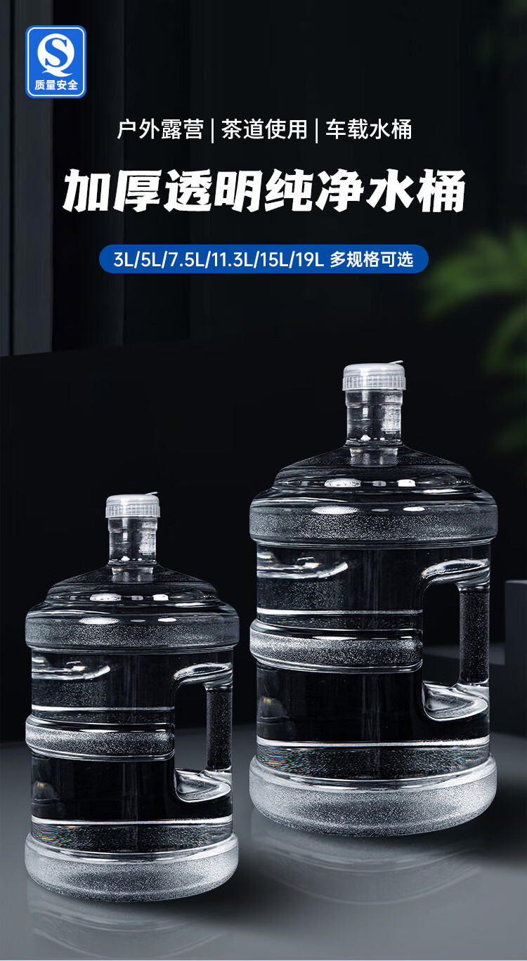 商品名称: 美厨(maxcook)纯净水桶 矿泉水桶饮水桶 15L桶装水塑料饮水机手提户外桶MCX7537 透明螺纹盖水桶/个