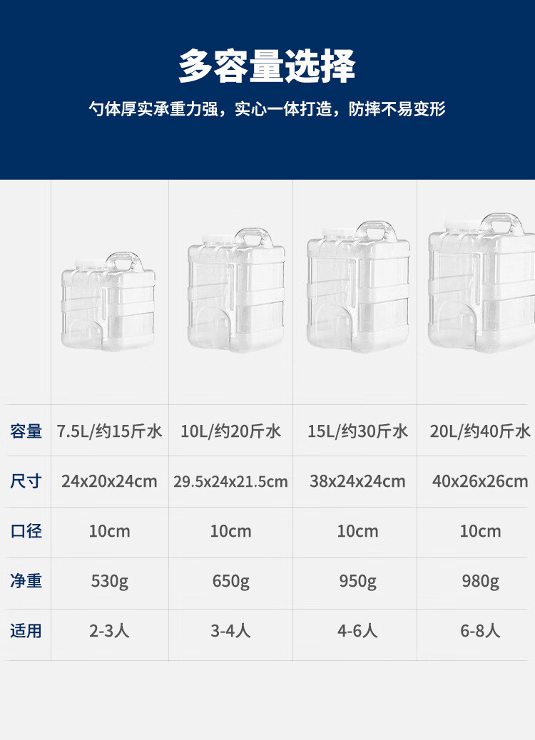 • 商品名称:美厨(maxcook)纯净水桶 矿泉水桶饮水桶7.5L 自驾游手提户外 方形 MCX8104 水桶纯净水桶方形储水桶7.5L/个