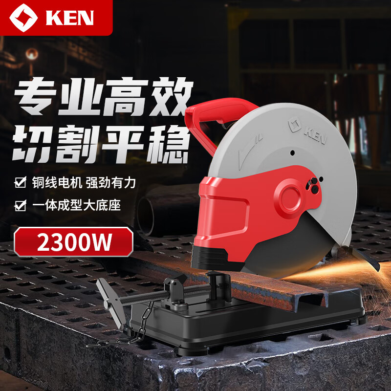 • 商品名称:锐奇(KEN)型材切割机钢材机金属切割机2300W电动大功率355型大底座7614NX 7614NX/台
