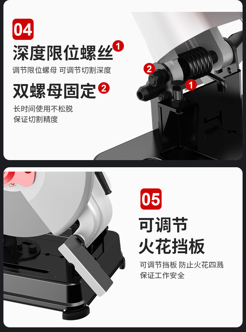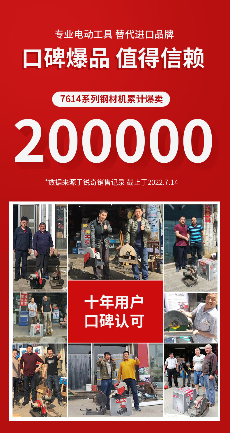 包装清单: 锐奇7614NX钢材机主机*1、碳刷*1、扳手*1、砂轮片*1、说明书*1
