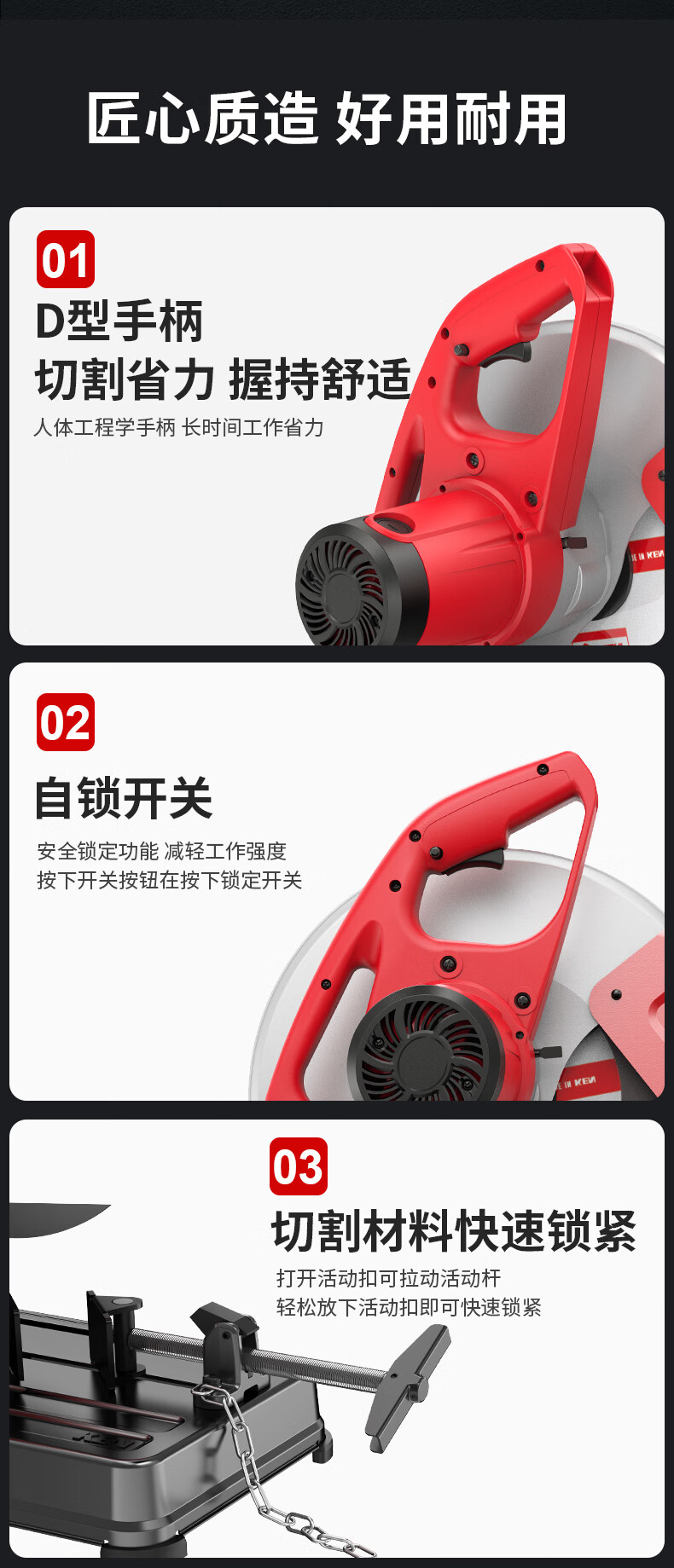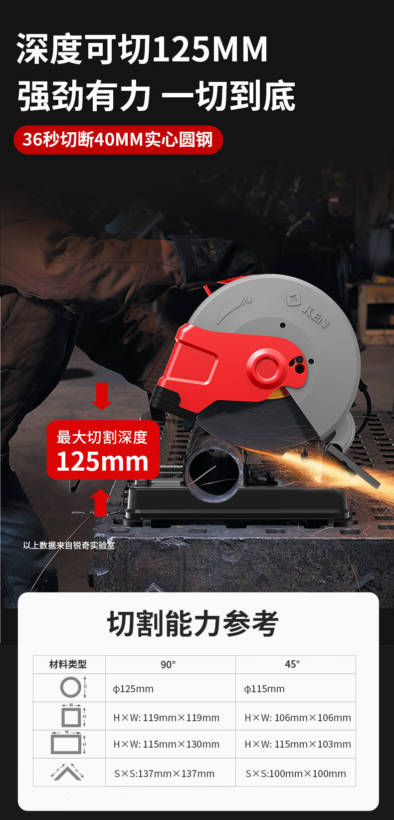 商品名称: 锐奇(KEN)型材切割机钢材机金属切割机2300W电动大功率355型大底座7614NX 7614NX/台