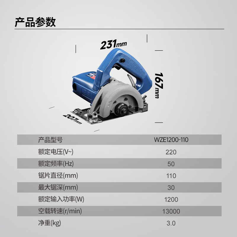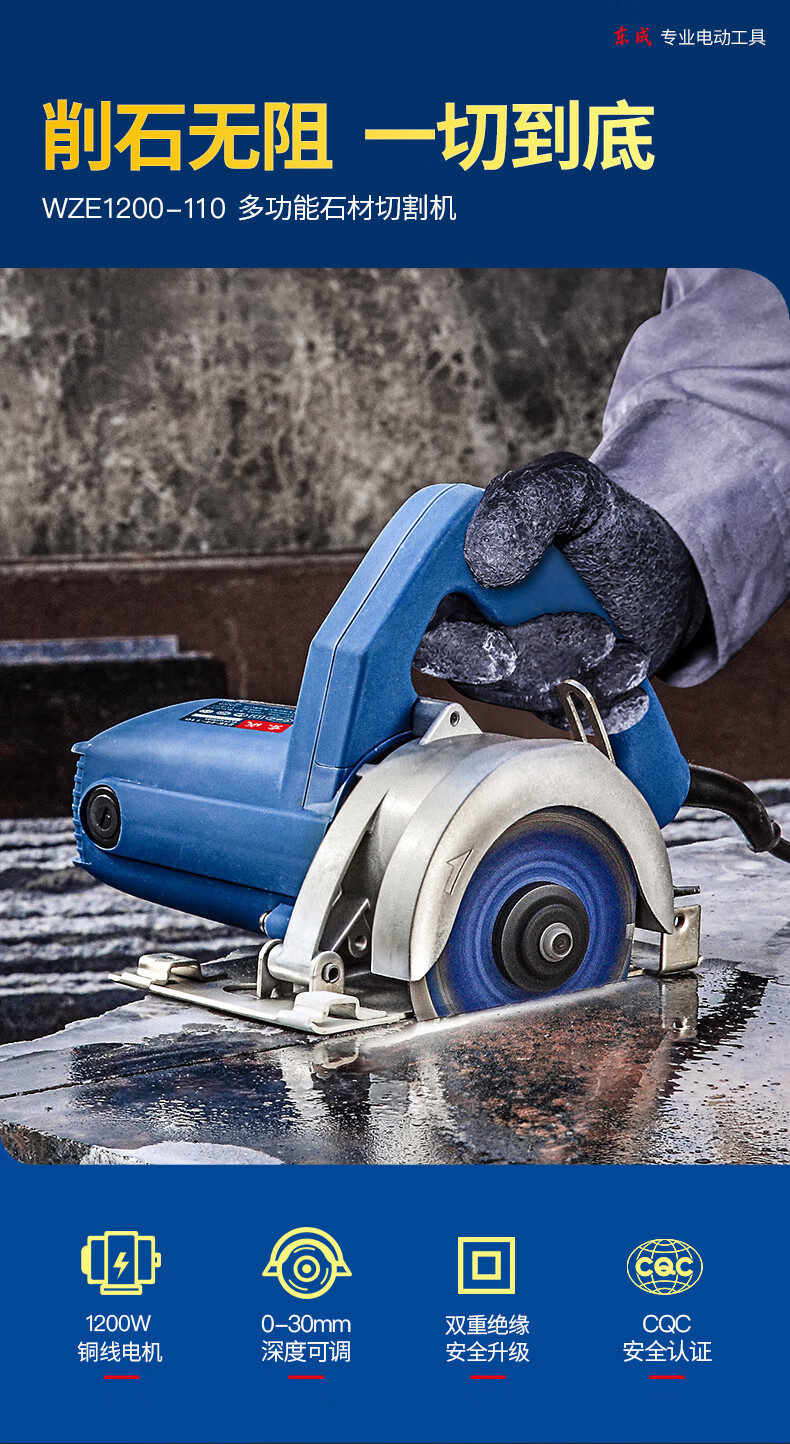 • 商品名称:东成切割机WZE1200-110(A套餐)石材开槽云石机电锯切割 WZE1200-110(A套餐)/套