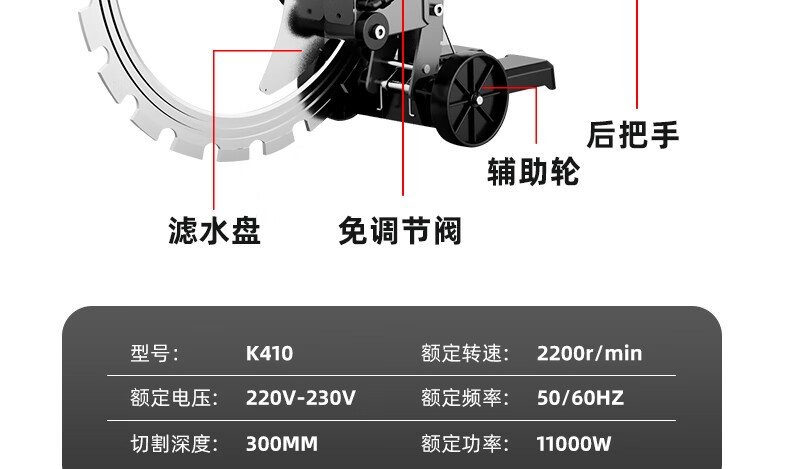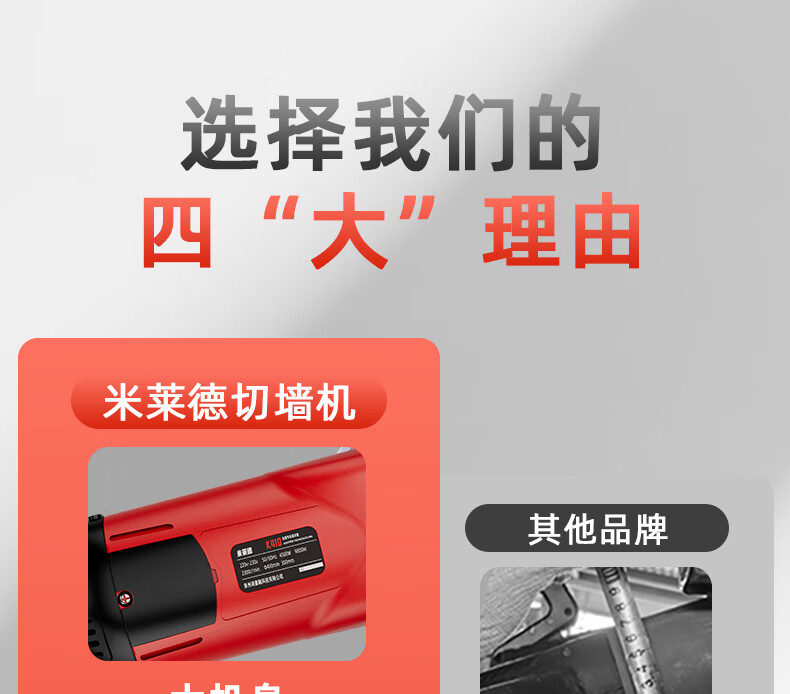 • 商品名称:米莱德切墙机混凝土切割机环形墙体改门开锯墙神器手提水泥红砖墙壁电锯 MLD-9500/台