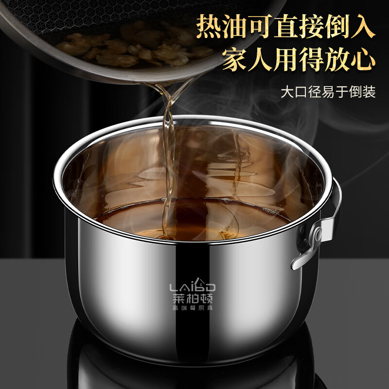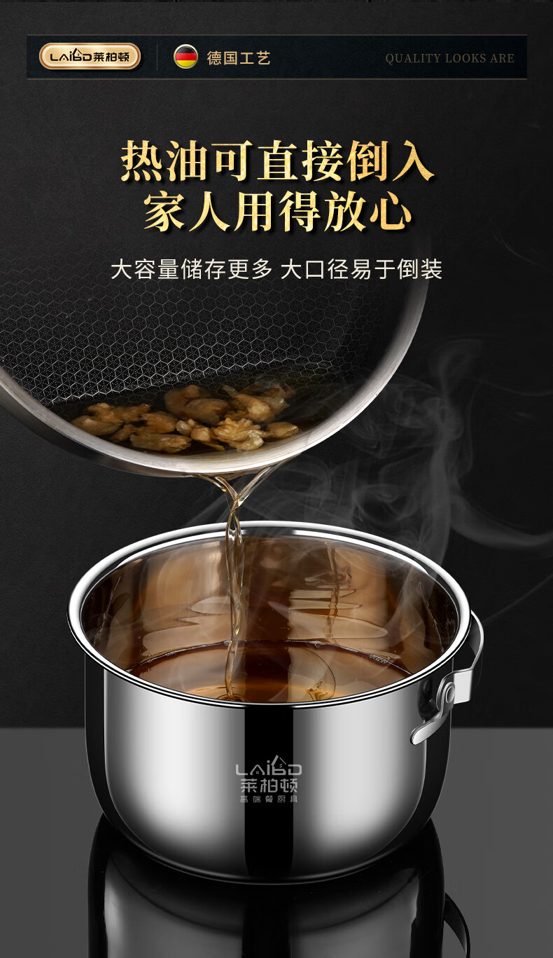 莱柏顿316不锈钢猪油罐大容量调味盆带盖带滤网猪油盆调味罐调料缸2.6L 316不锈钢猪油罐/个