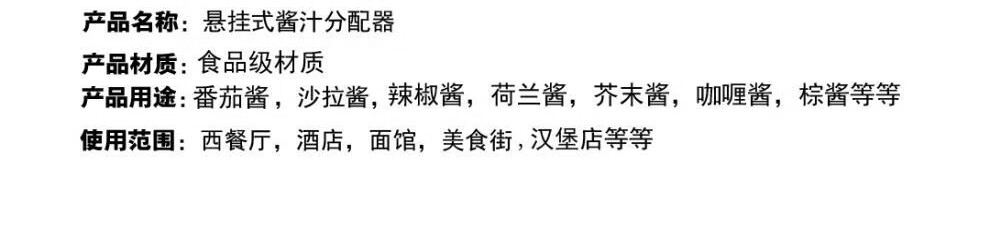 包装清单: 商用悬挂式挤酱瓶立式酱料桶挤压瓶酱汁泵 3.5L 方桶*1