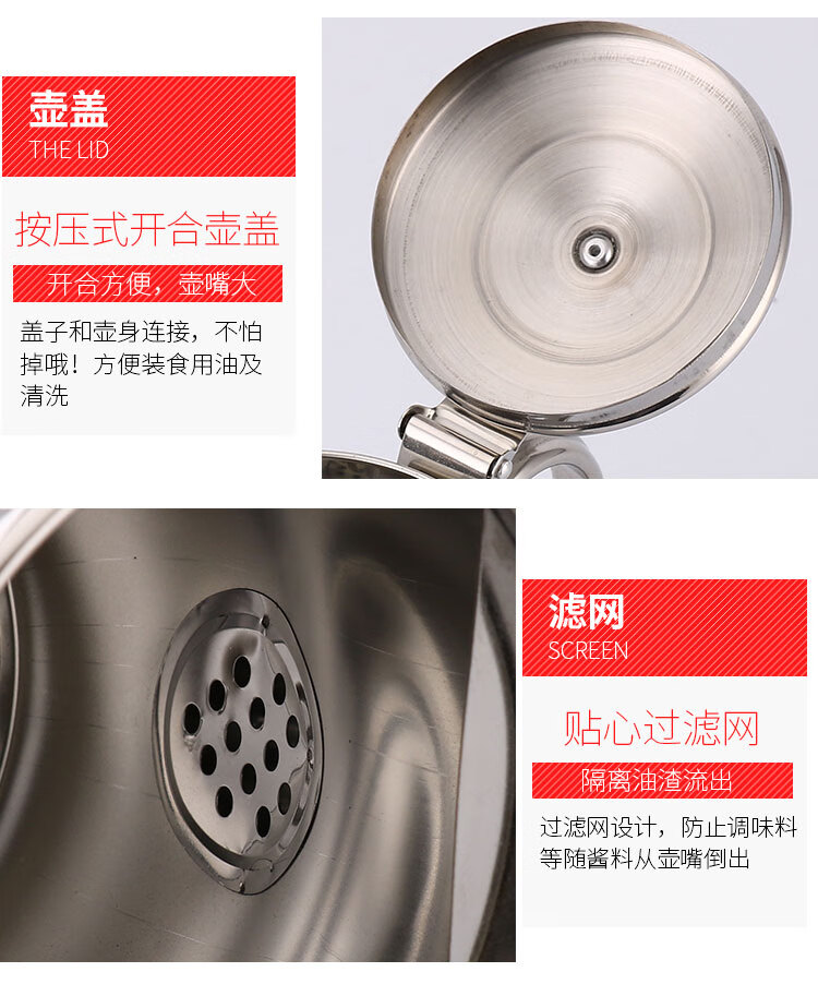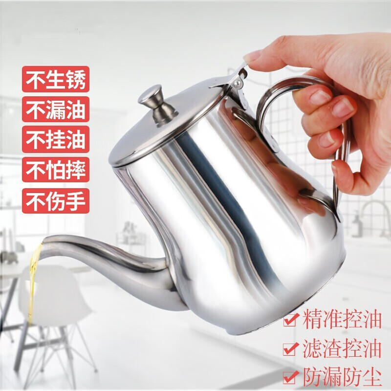 • 商品名称:京清福 不锈钢油壶厨房防漏酱醋装调料壶 带网70安士(约装3斤) 带网70安士(约装3斤)/个