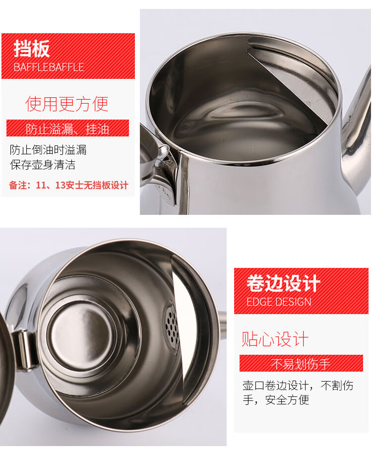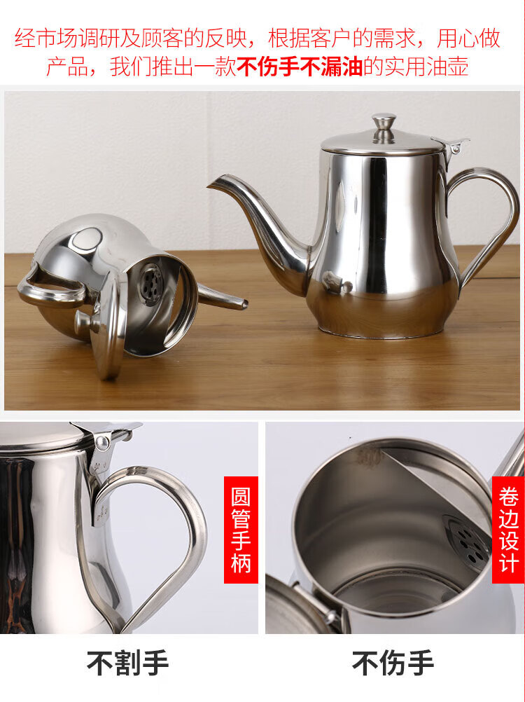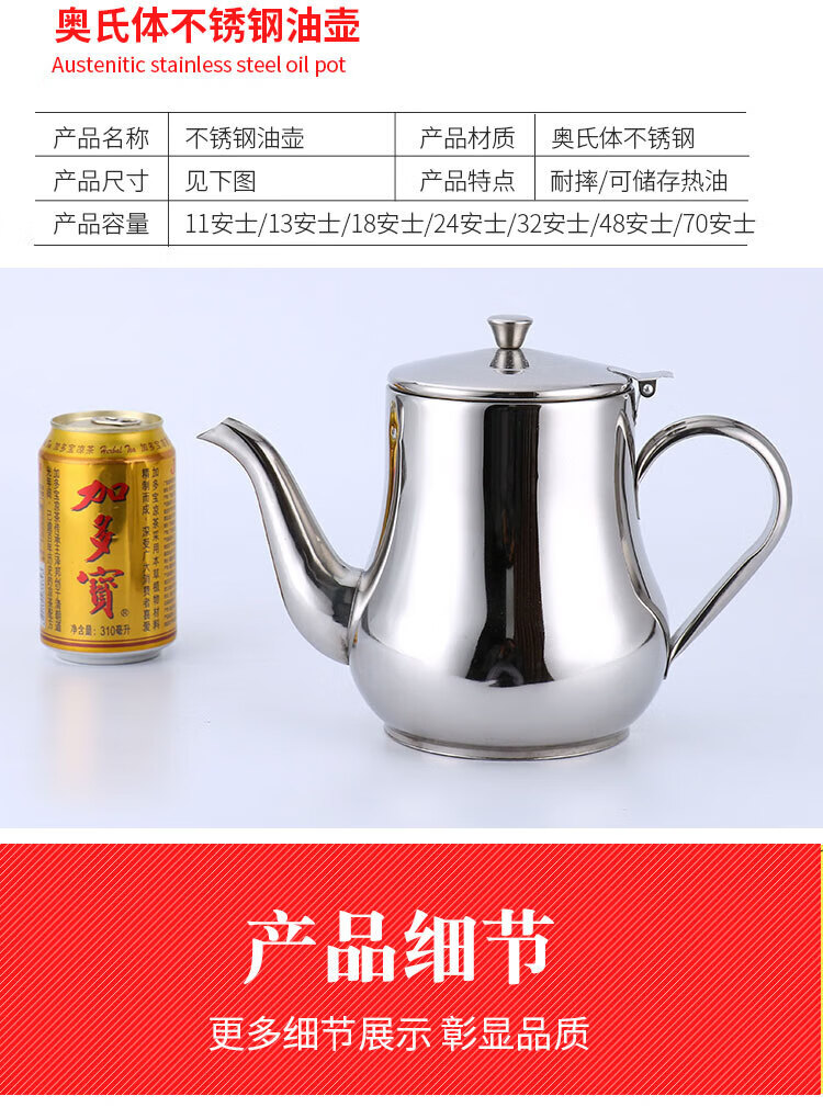 商品名称: 京清福 不锈钢油壶厨房防漏酱醋装调料壶 带网70安士(约装3斤) 带网70安士(约装3斤)/个