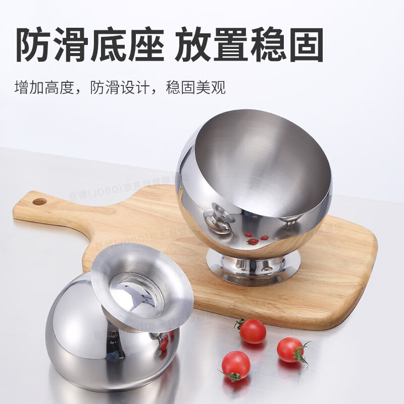 厨具  > 厨房储物  > 调料器皿  >  巨博/JOBO  >  巨博(JOBO)不锈钢斜口调料碗 蘸料调味罐带底座 火锅店自助餐厅推荐小号14cm 不锈钢斜口碗调料碗中号14cm带底座/个
