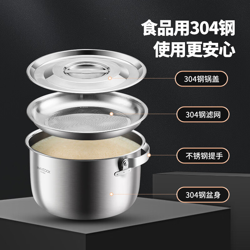 商品名称: 美厨(maxcook)304不锈钢猪油罐调料盆 猪油盆调味罐调料缸6L带盖带网MCWA1655 304不锈钢猪油盆猪油罐/个