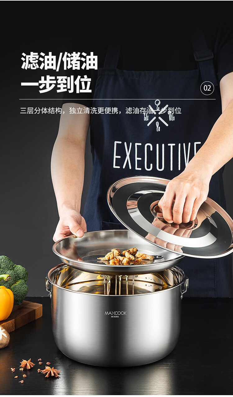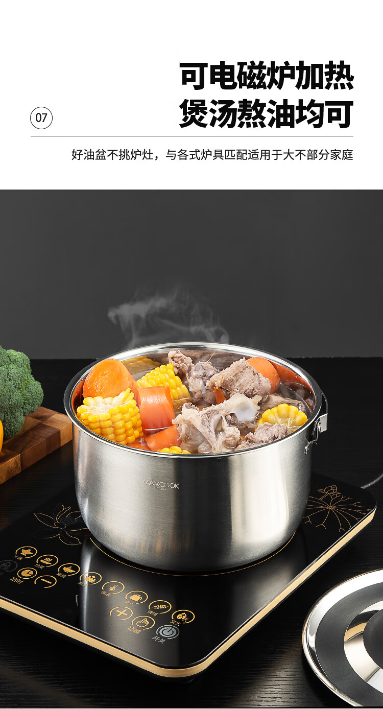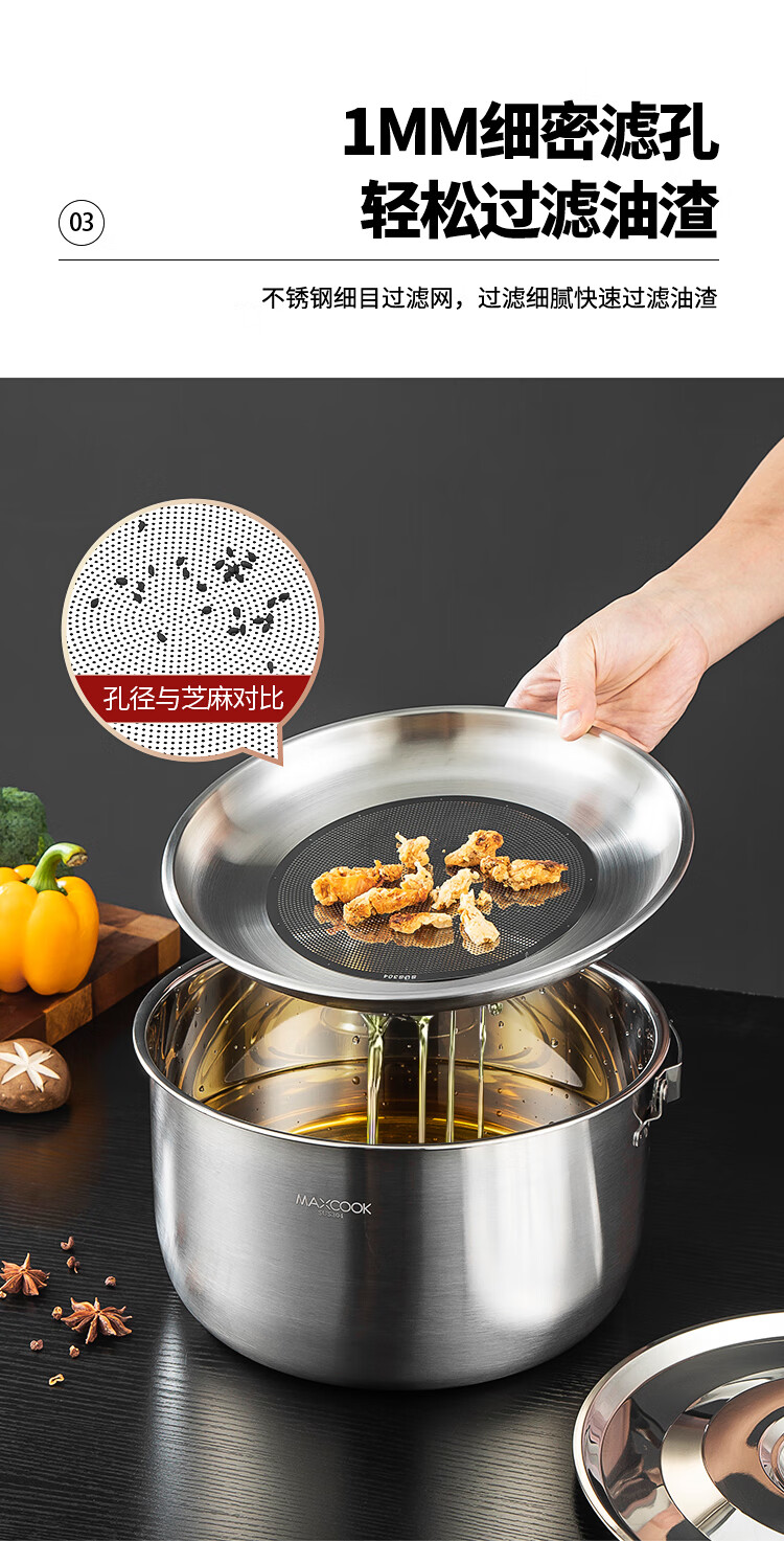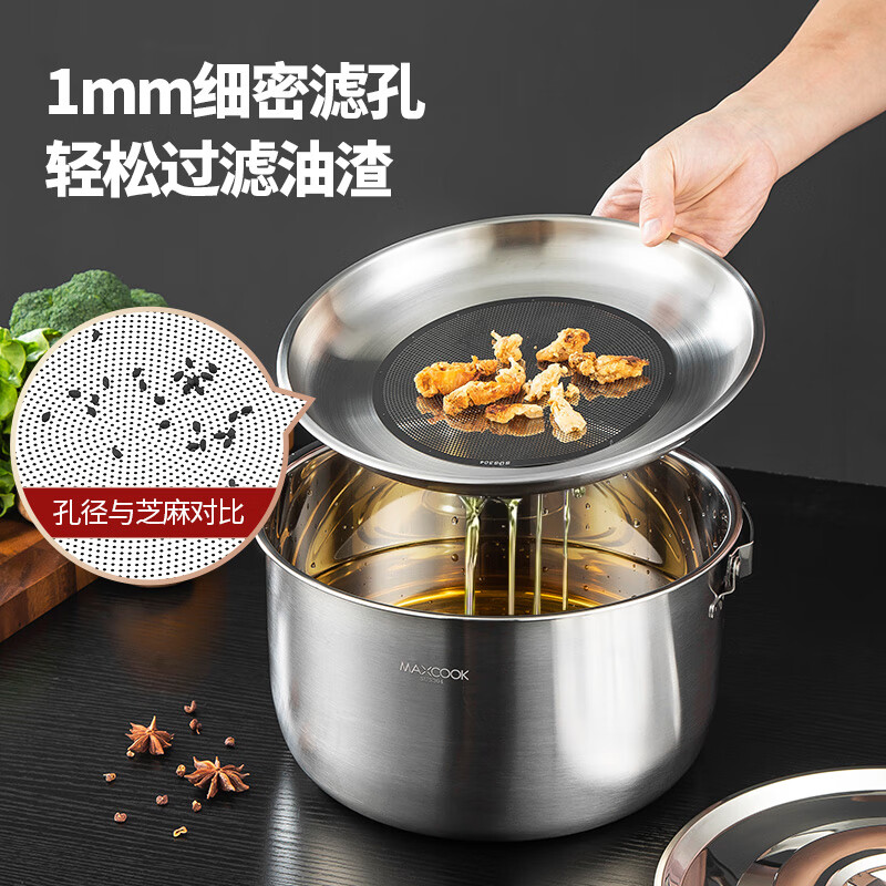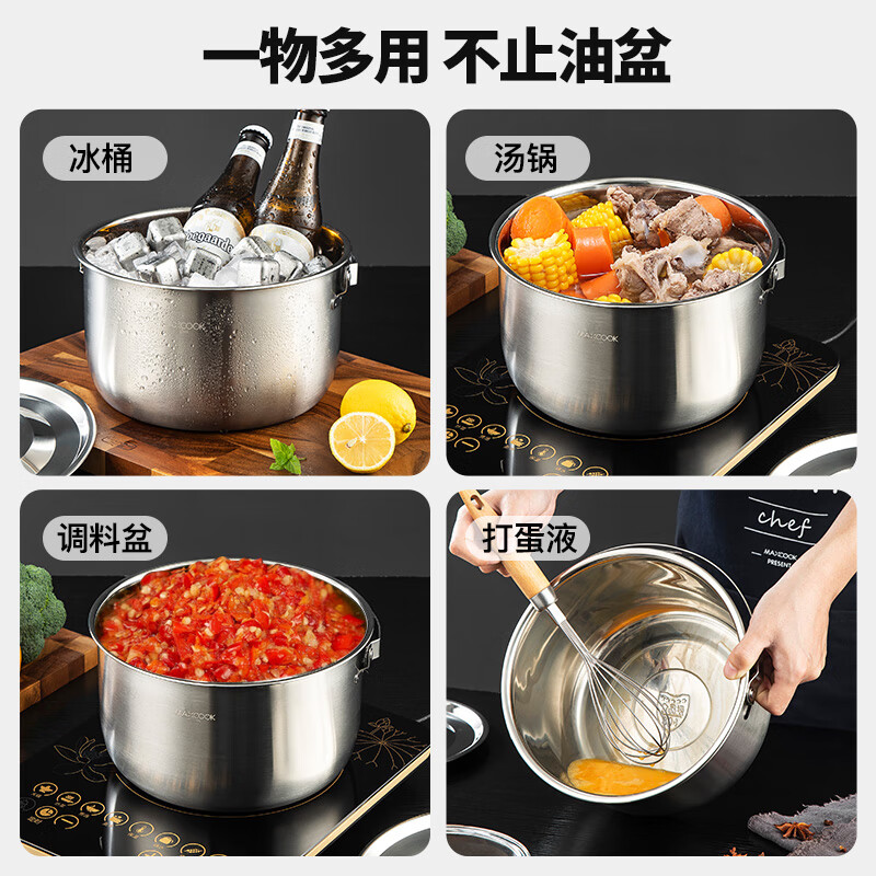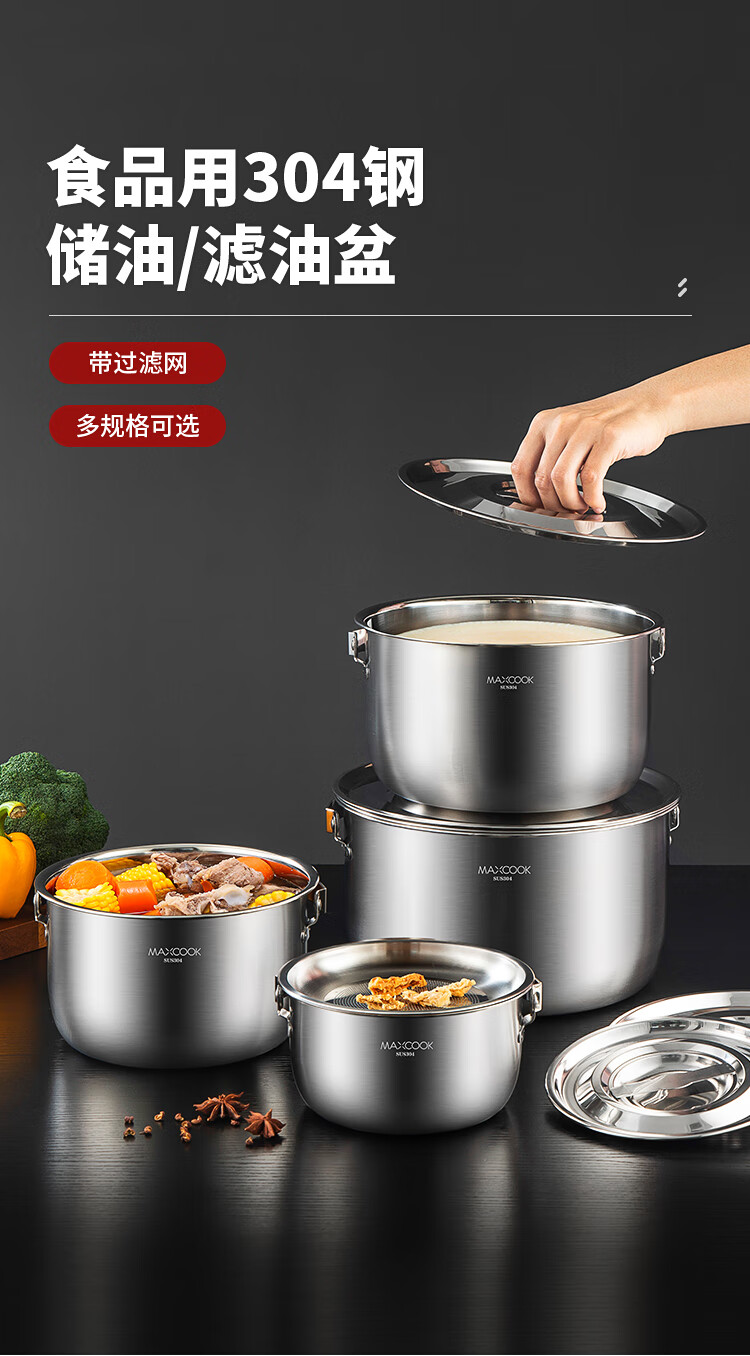 美厨(maxcook)304不锈钢猪油罐调料盆 猪油盆调味罐调料缸6L带盖带网MCWA1655 304不锈钢猪油盆猪油罐/个