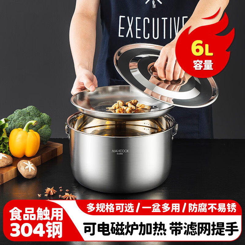 厨具  > 厨房储物  > 调料器皿  >  美厨/maxcook  >  美厨(maxcook)304不锈钢猪油罐调料盆 猪油盆调味罐调料缸6L带盖带网MCWA1655 304不锈钢猪油盆猪油罐/个