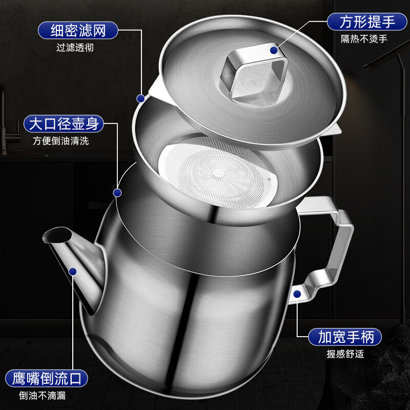 厨具  > 厨房储物  > 调料器皿  >  蔚毅  >  蔚毅 不锈钢油壶家用酒壶倒油瓶安士壶调味瓶罐厨房装油罐滤网 2000ML 2000ML(约装4斤油)/个