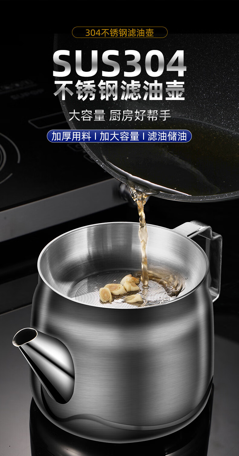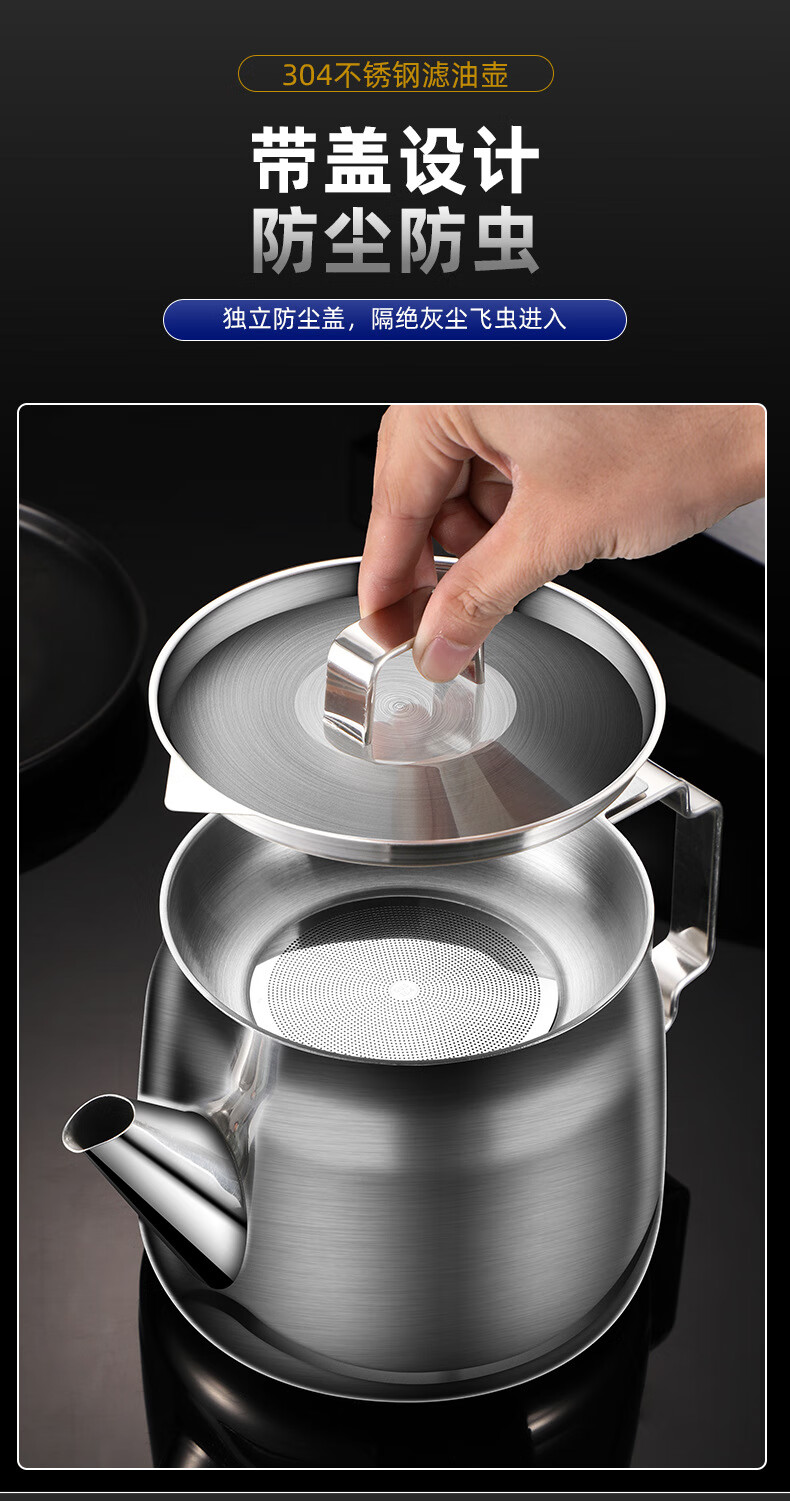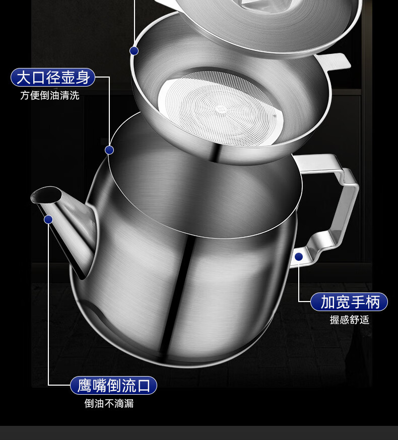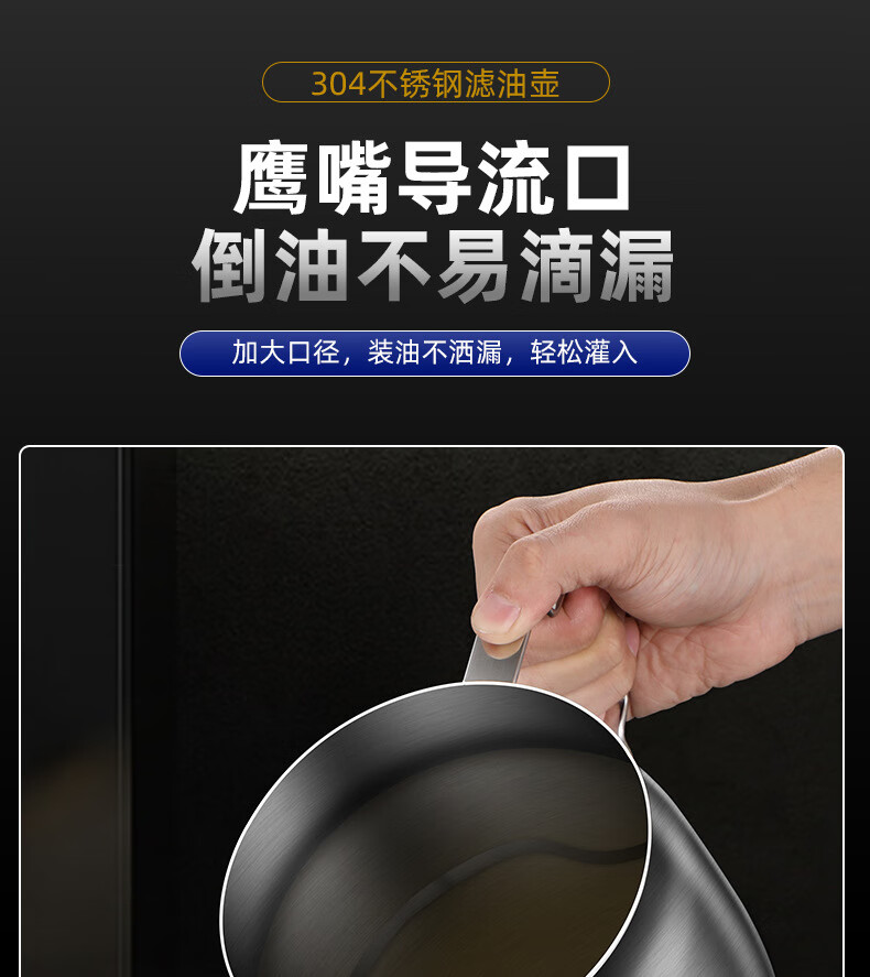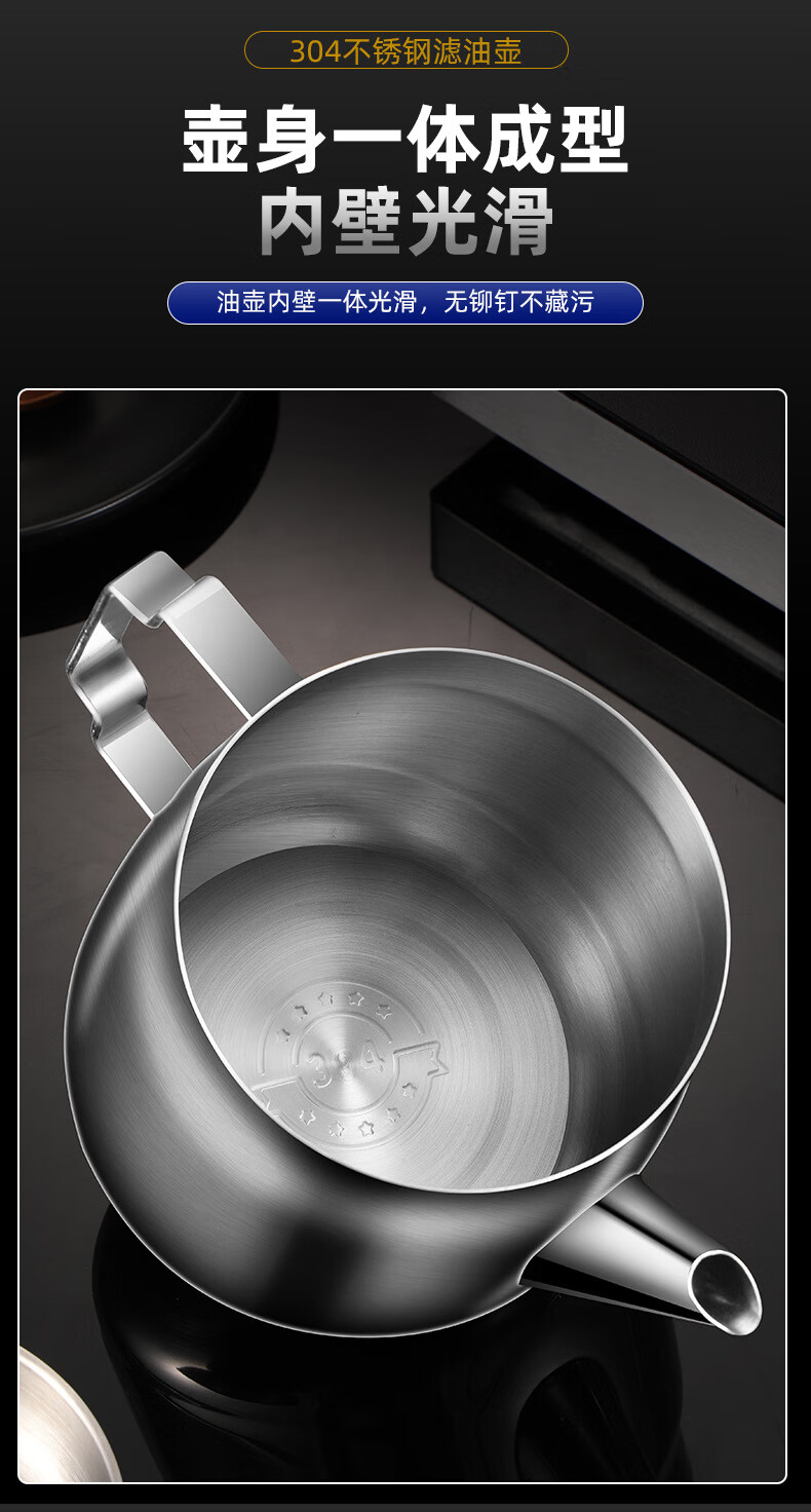 • 商品名称:蔚毅 不锈钢油壶家用酒壶倒油瓶安士壶调味瓶罐厨房装油罐滤网 2000ML 2000ML(约装4斤油)/个