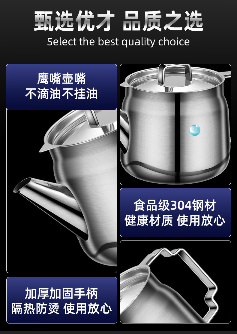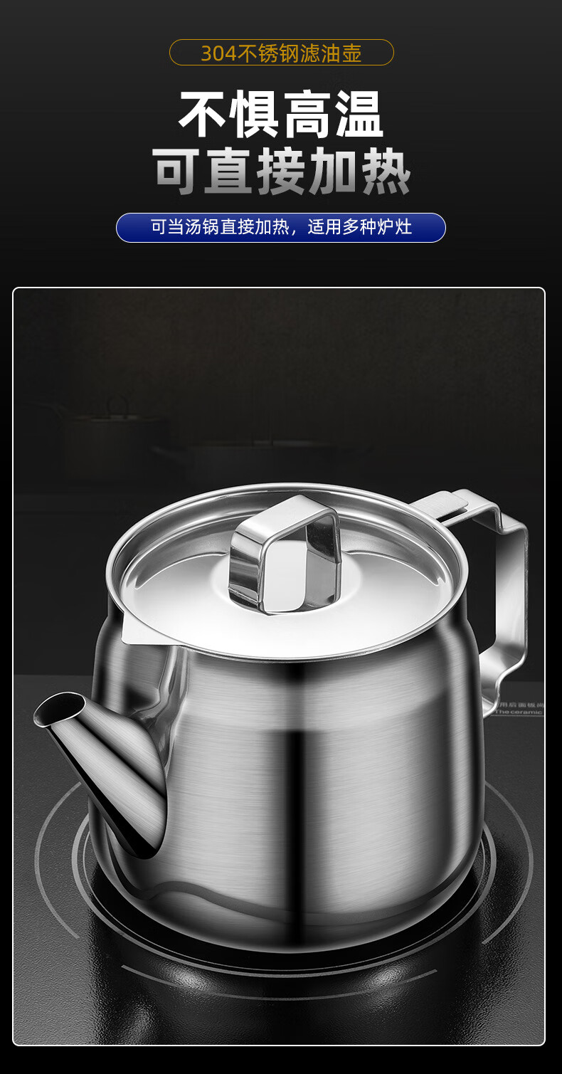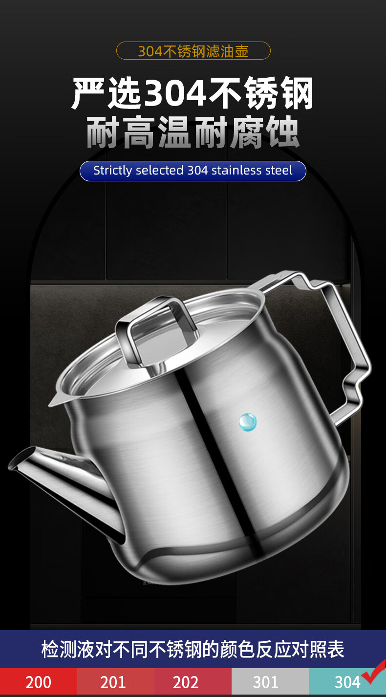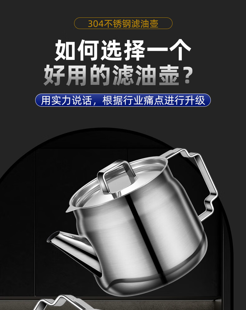 • 商品名称:蔚毅 不锈钢油壶家用酒壶倒油瓶安士壶调味瓶罐厨房装油罐滤网 2000ML 2000ML(约装4斤油)/个