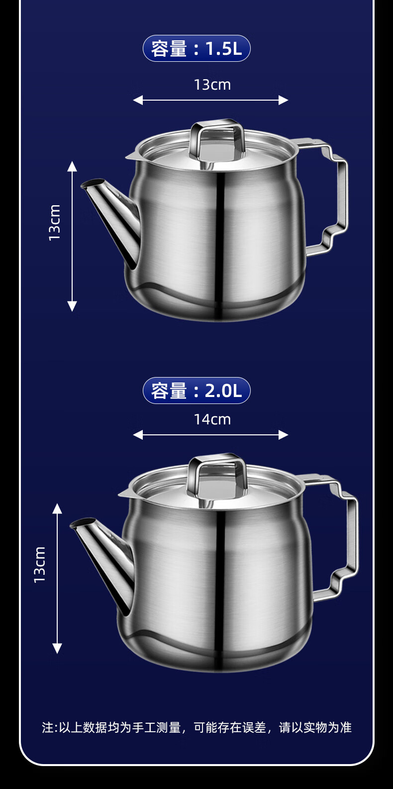 商品名称: 蔚毅 不锈钢油壶家用酒壶倒油瓶安士壶调味瓶罐厨房装油罐滤网 2000ML 2000ML(约装4斤油)/个