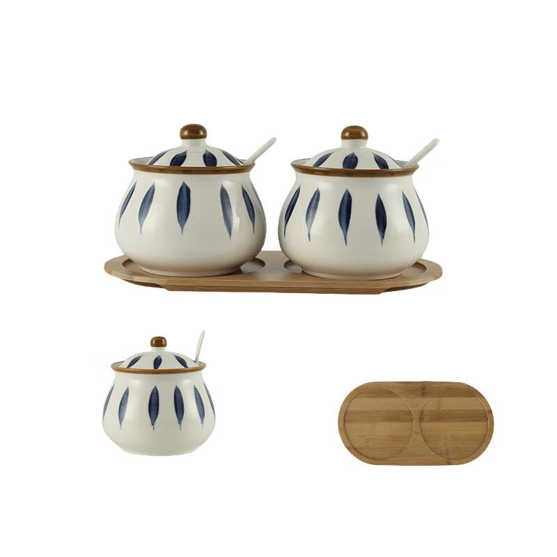 厨具  > 厨房储物  > 调料器皿  >  谦星  >  谦星 陶瓷调料盒辣椒罐家用厨房调味罐 中号套二毛草500ml 3套 中号套二毛草500ml 3套/件