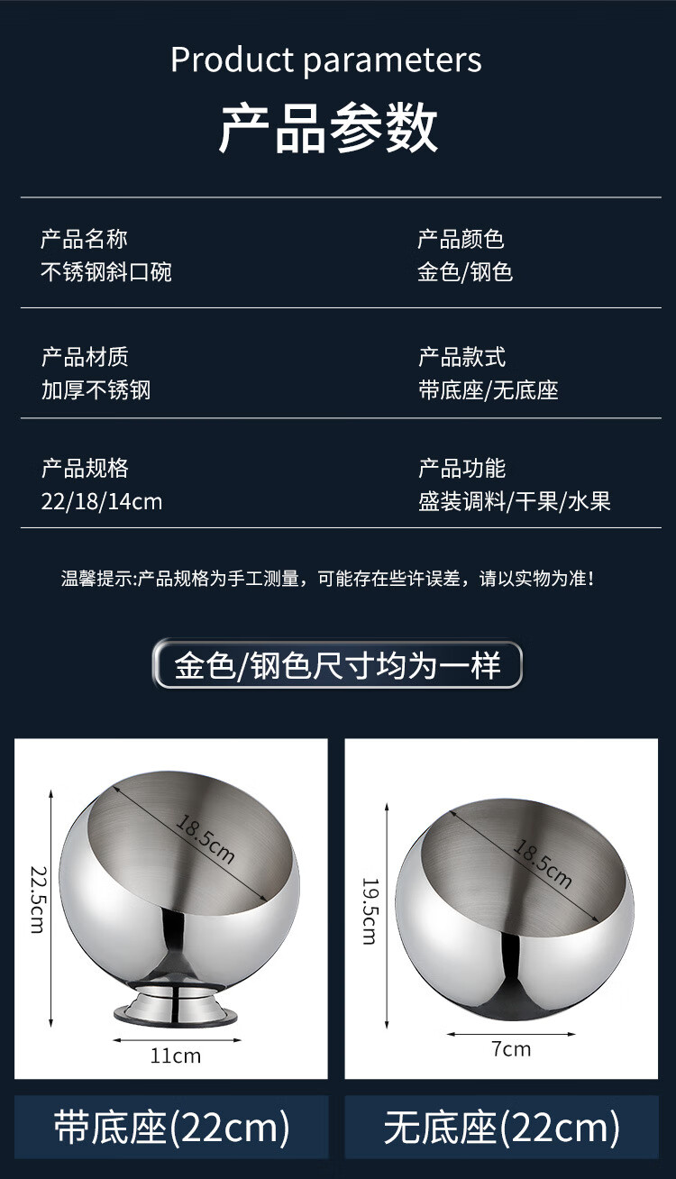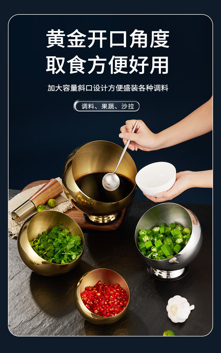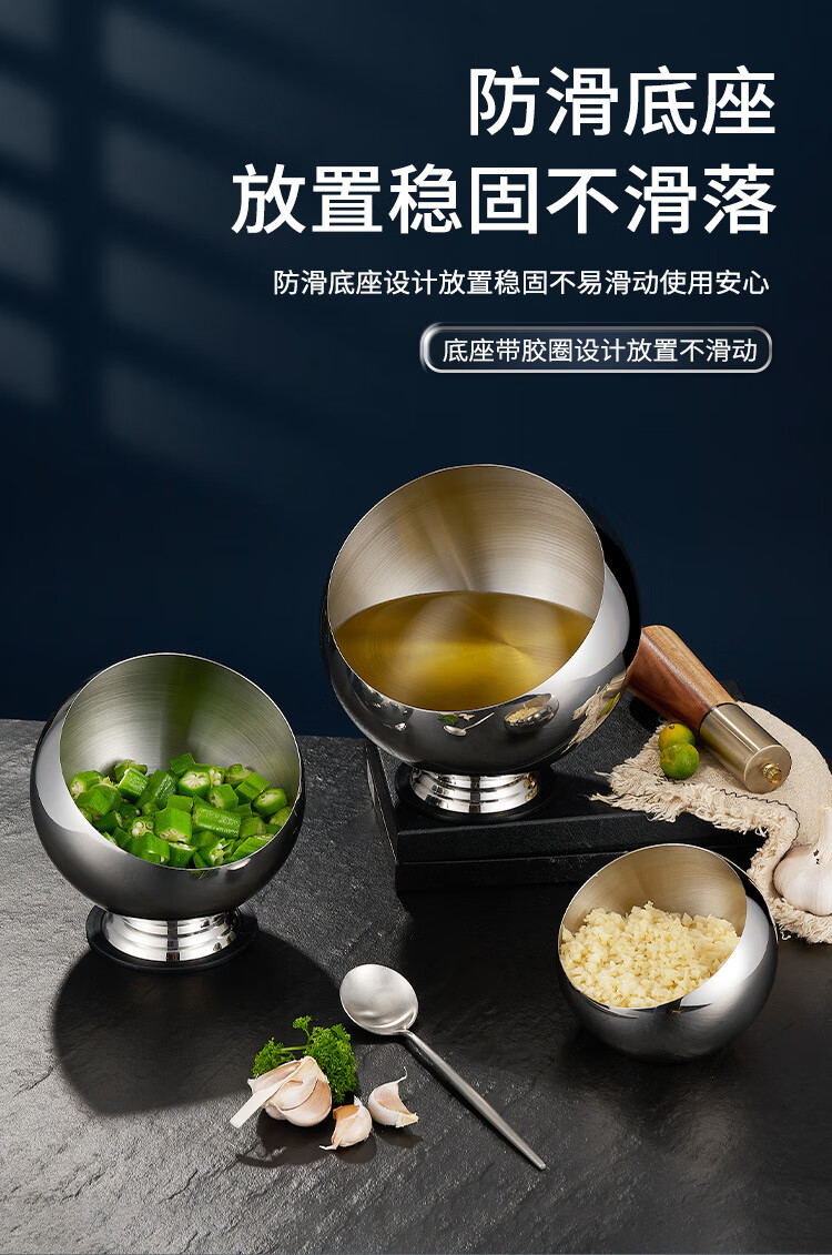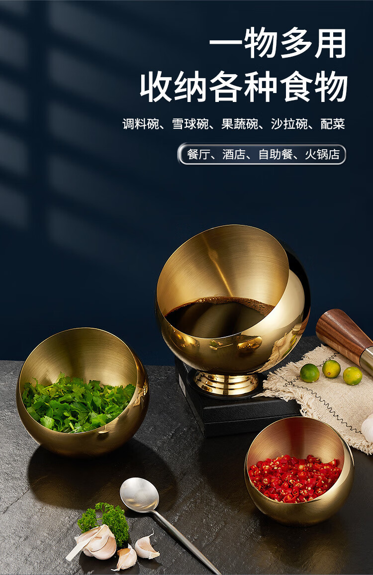 • 商品名称:厨方案不锈钢斜口碗自助酱料碗餐具球形麻辣烫调味火锅店调料碗18本无 厨方案/个