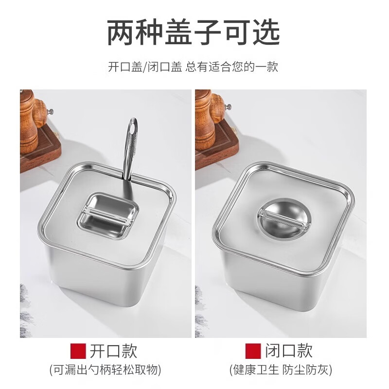 厨方案不锈钢方形调料罐味盅佐料盒厨房配料盒14cm闭口盖CFA-534 厨方案/个