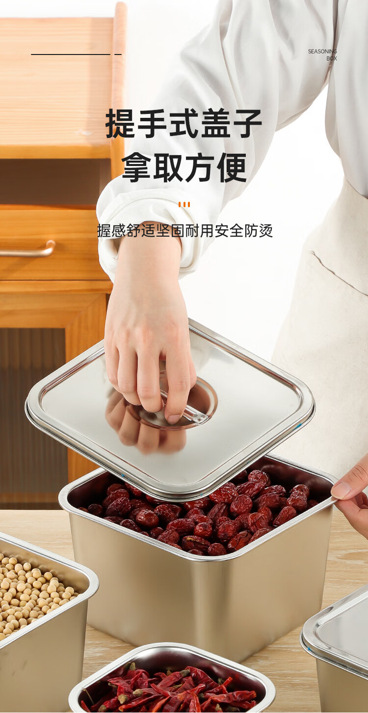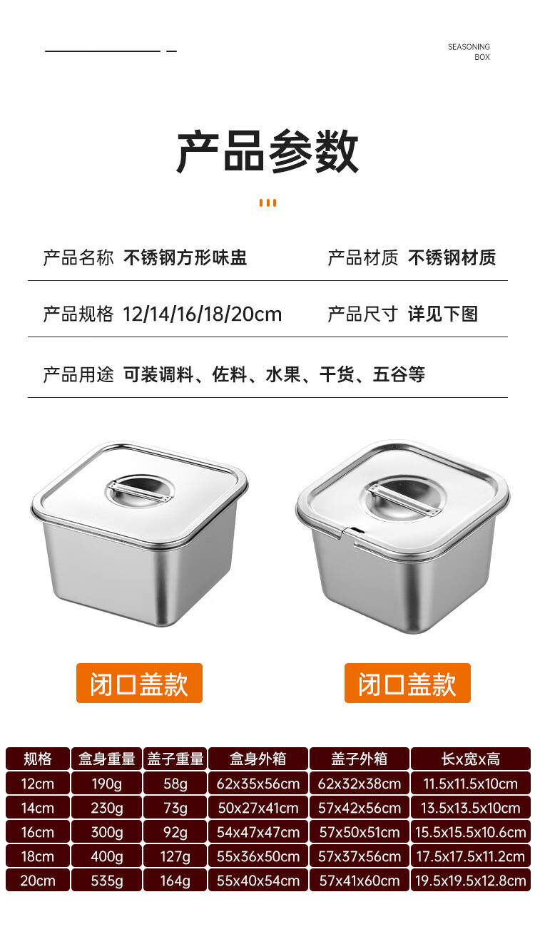 商品名称: 厨方案不锈钢方形调料罐味盅佐料盒厨房配料盒14cm闭口盖CFA-534 厨方案/个