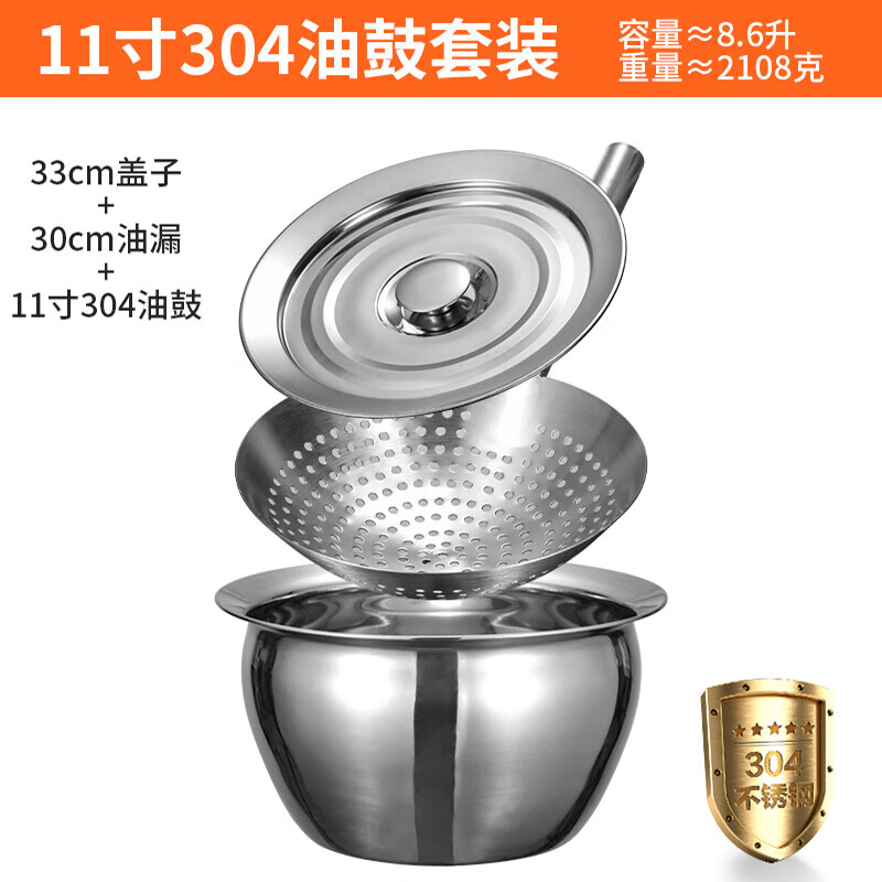 商品名称: 丹诗致远 不锈钢油盆油缸油鼓油罐油盆套装 304 11英寸油鼓+漏勺+盖子 11英寸油鼓+漏勺+盖子/个