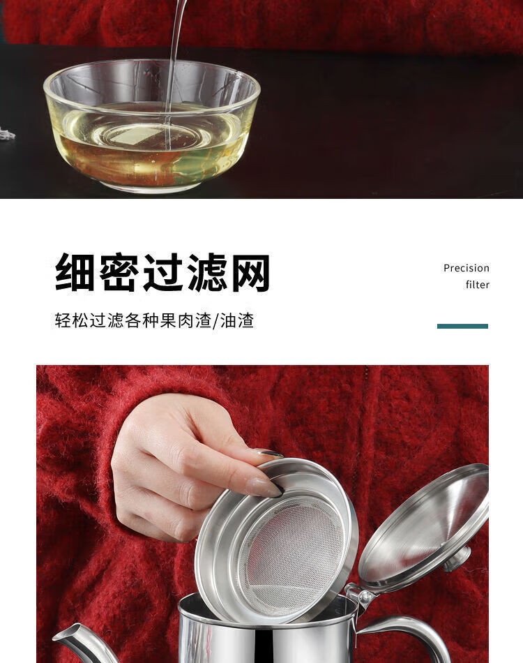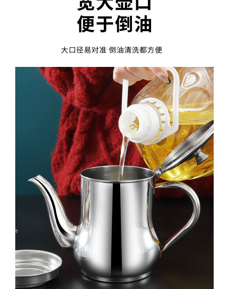 • 商品名称:悍路油壶不锈钢油罐家用厨房过滤油渣加厚油壶1250ML(约2.5斤)70oz 油壶不锈钢/个