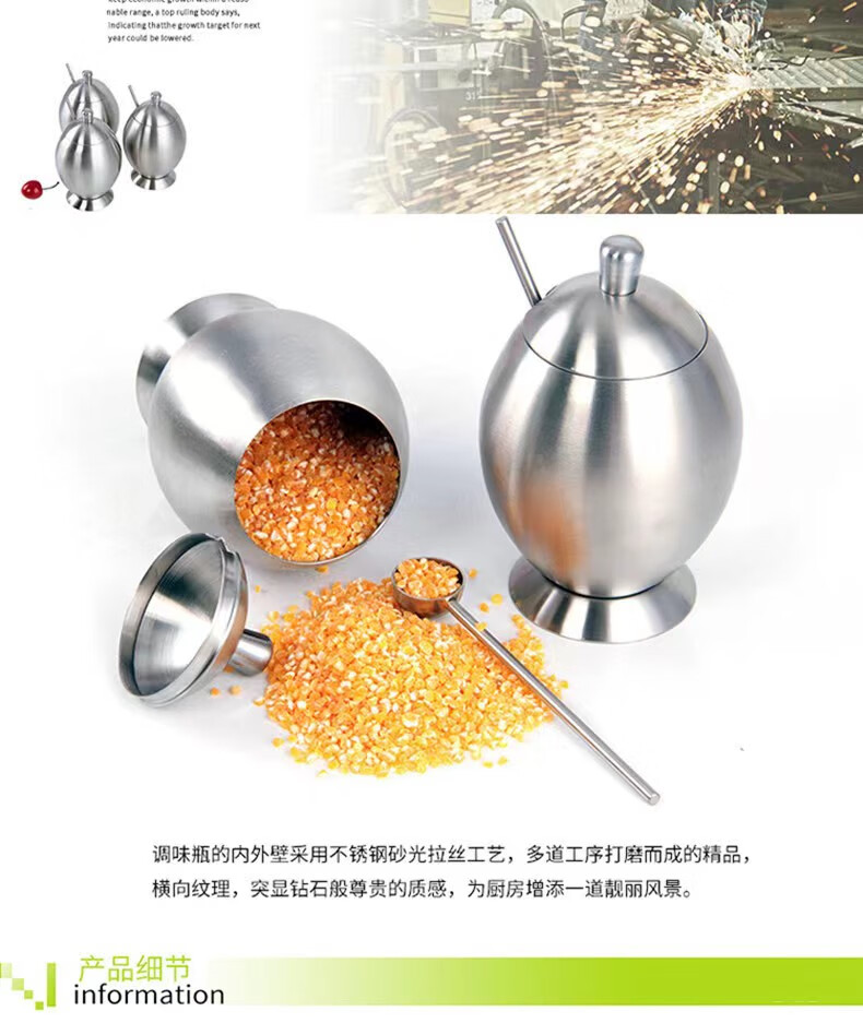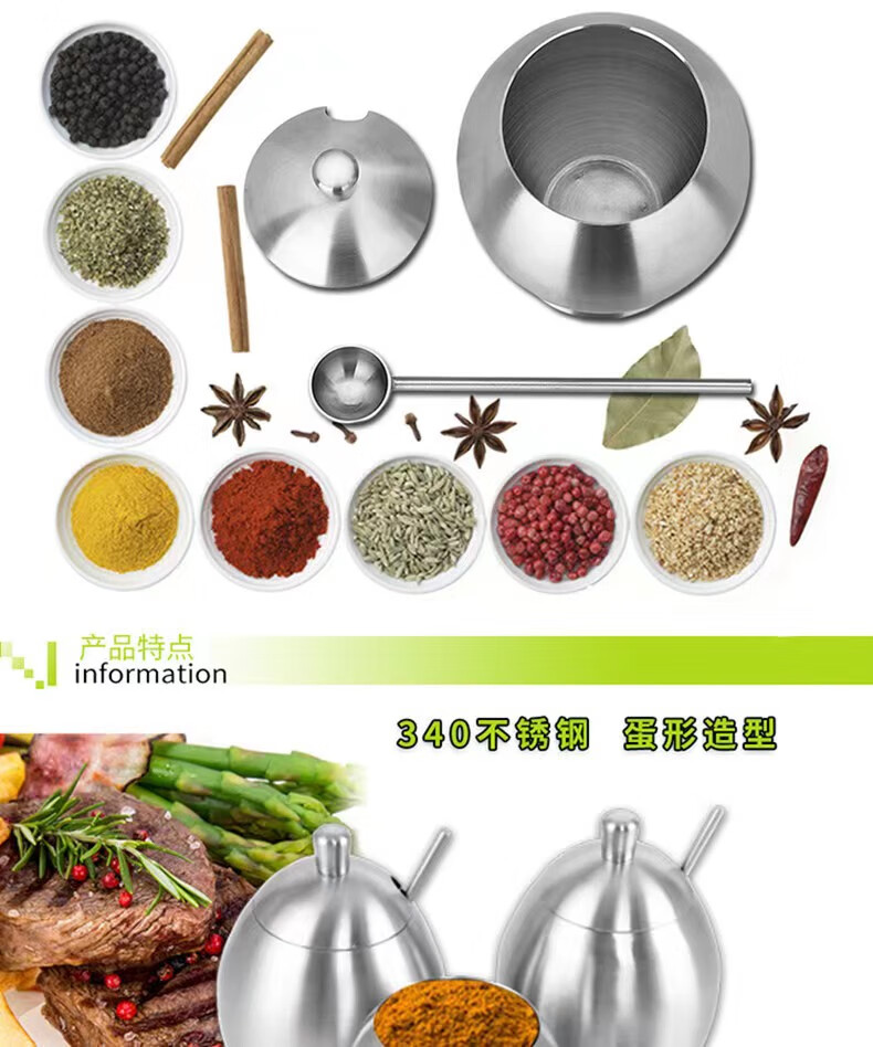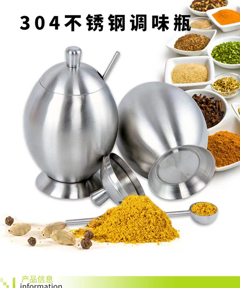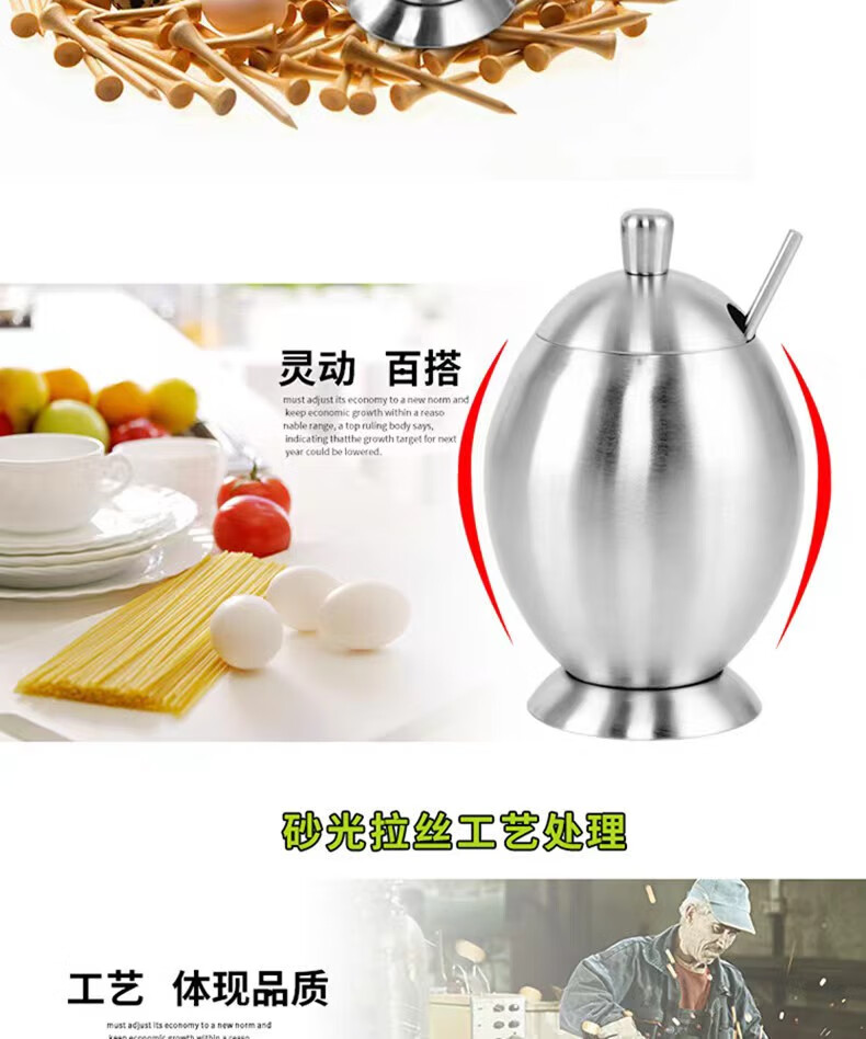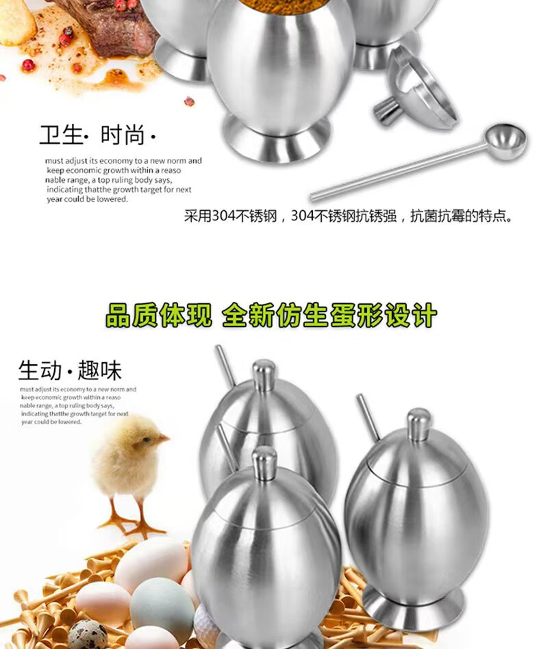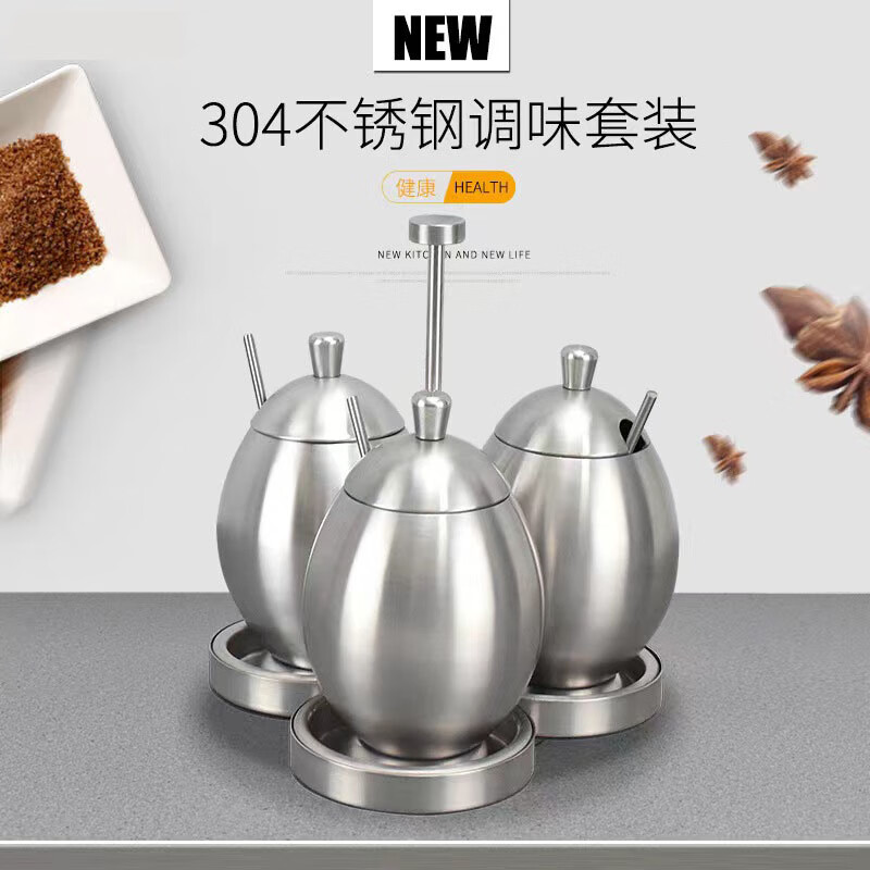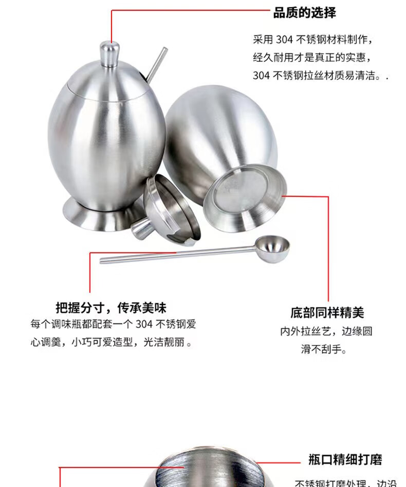 • 商品名称:麦朗 高端款 砂光全304不锈钢蛋形调料罐调料盒多用途厨房用具三件套 蛋形/套