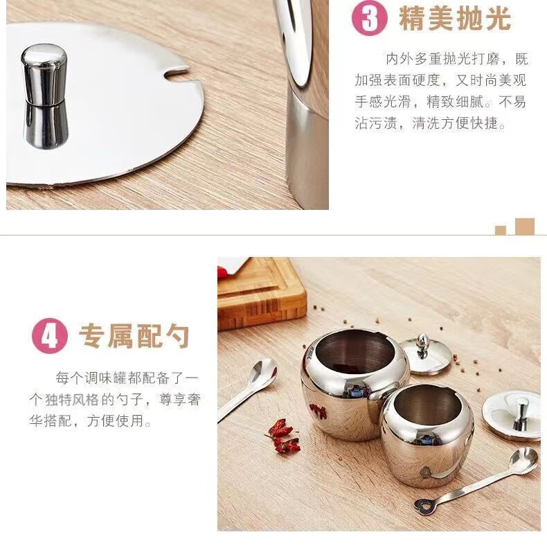 包装清单: 304不锈钢蛋形调料罐三件套*1