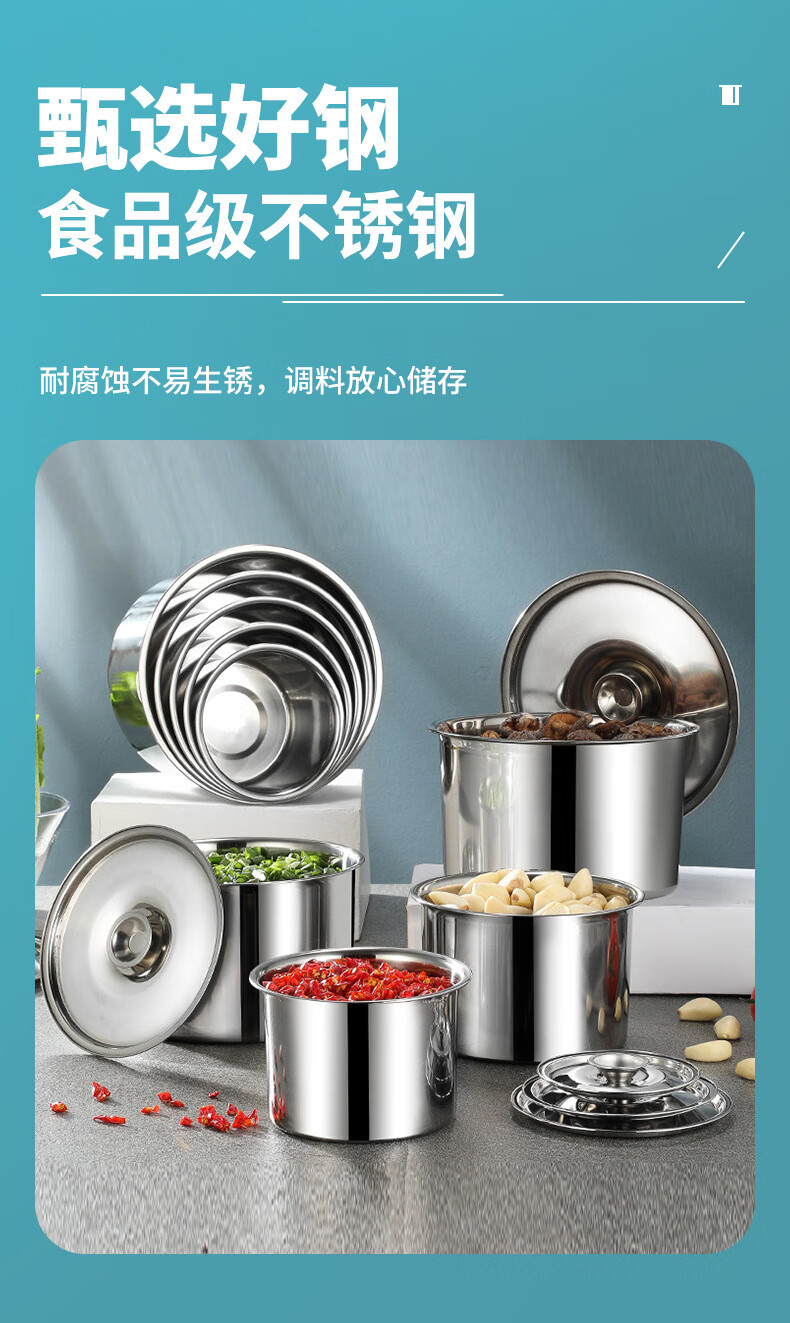 厨具  > 厨房储物  > 调料器皿  >  厨方案  >  厨方案不锈钢调味罐味盅加厚调料调味缸打蛋盅炖盅带盖佐料调味器皿18cm 厨方案/个