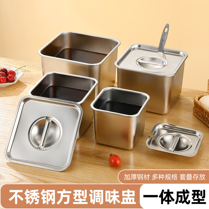 商品名称: 丹诗致远 不锈钢方形味盅佐料盒调味缸果酱盆可定制 18cm方盆开口盖 18cm方盆开口盖/个