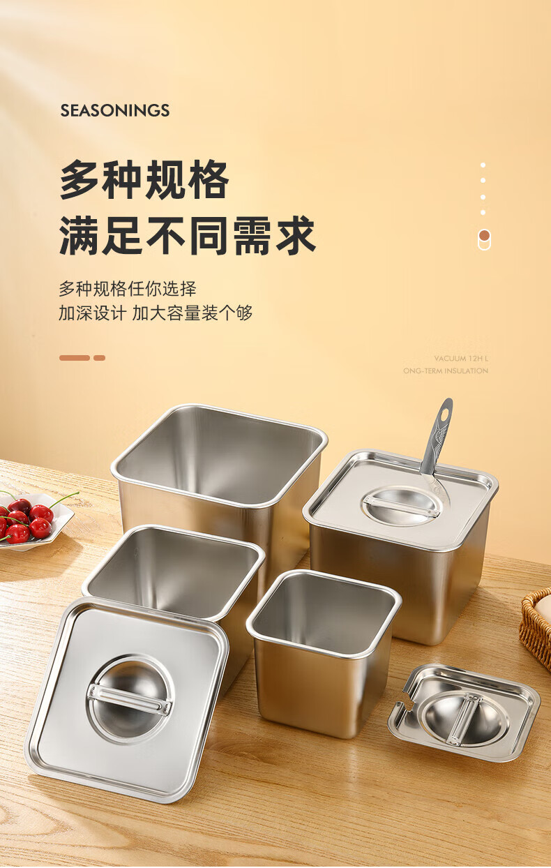 • 商品名称:丹诗致远 不锈钢方形味盅佐料盒调味缸果酱盆可定制 18cm方盆开口盖 18cm方盆开口盖/个