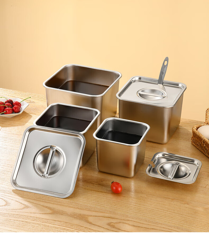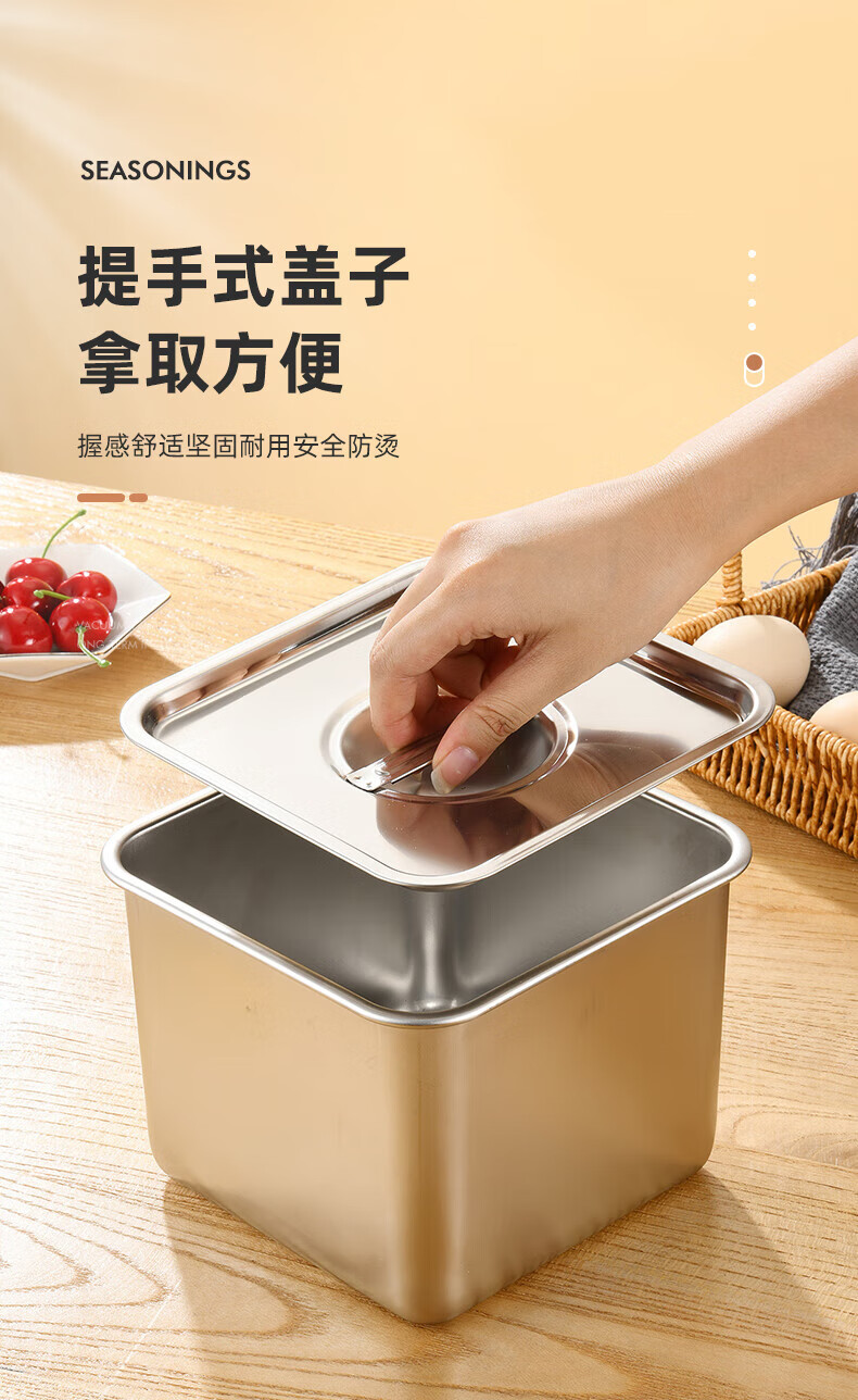 厨具  > 厨房储物  > 调料器皿  >  丹诗致远  >  丹诗致远 不锈钢方形味盅佐料盒调味缸果酱盆可定制 18cm方盆开口盖 18cm方盆开口盖/个