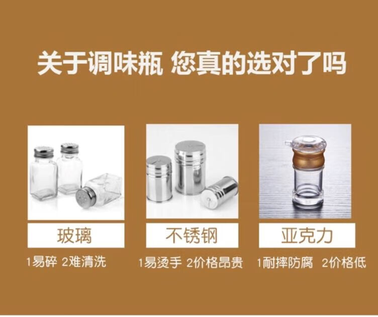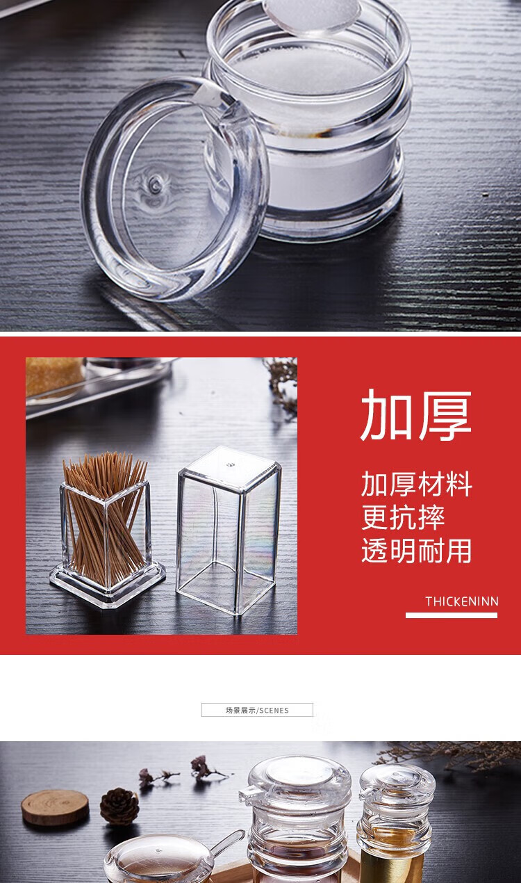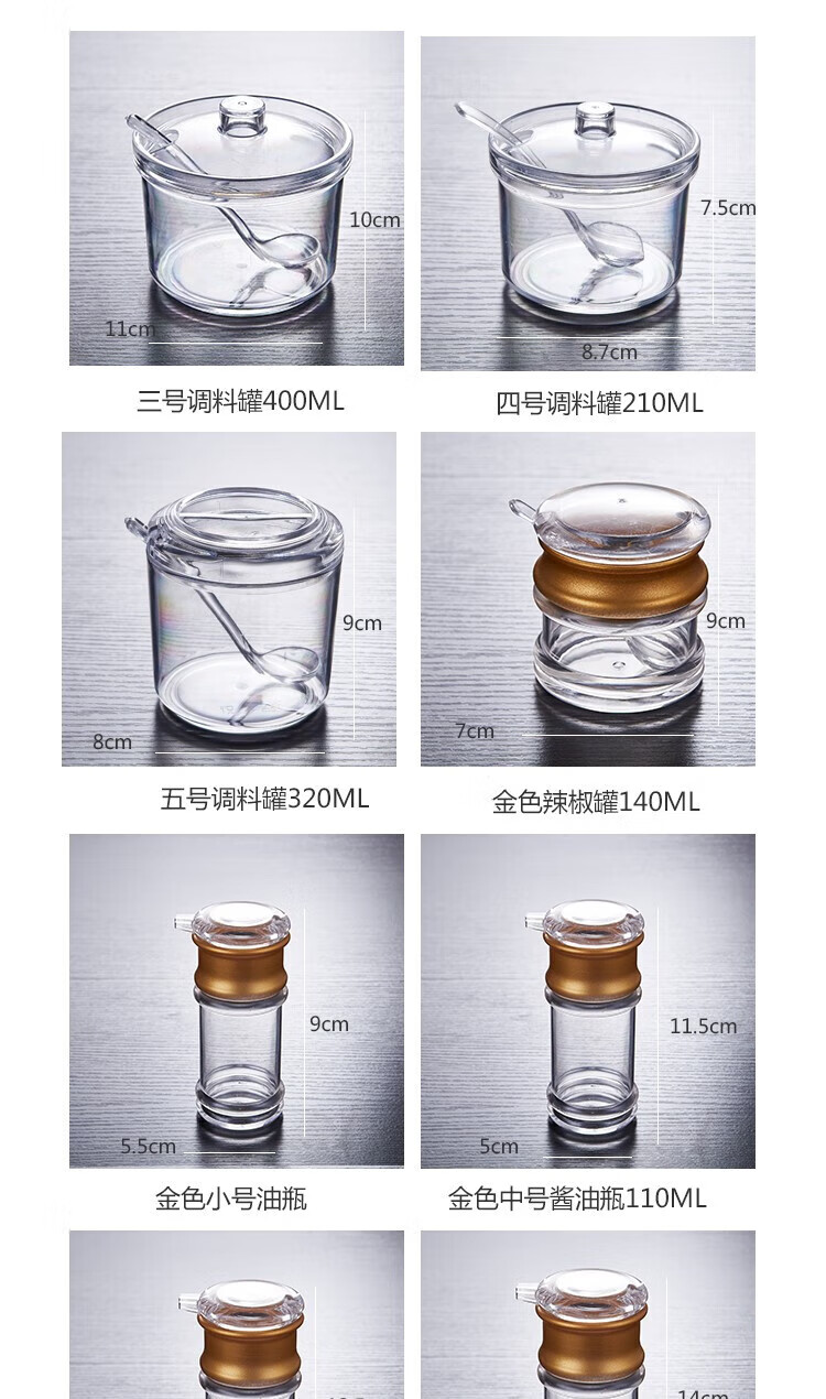 • 商品名称:丹诗致远 亚克力调料瓶塑料调味罐酱油瓶辣椒罐可定制 4件套【精品款】 4件套【精品款】/个