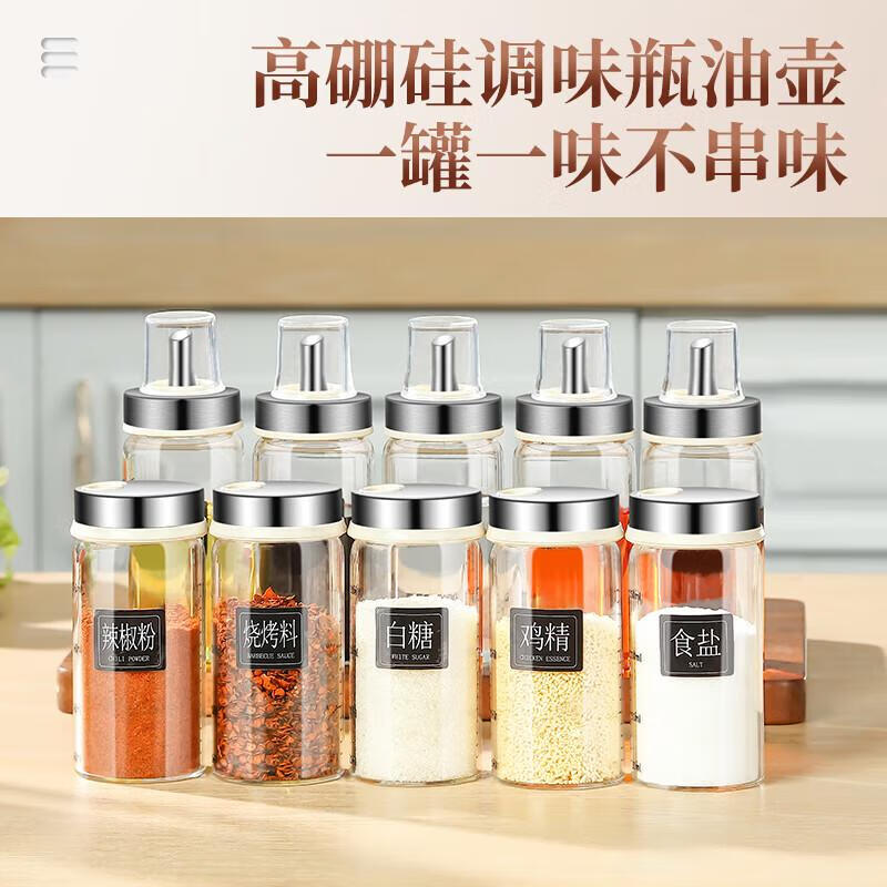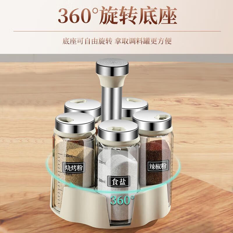 • 商品名称:莱羽炫厨房调料罐组合套装油壶盐罐套装盐味精调料盒旋转调味瓶调料盒 F-929/套