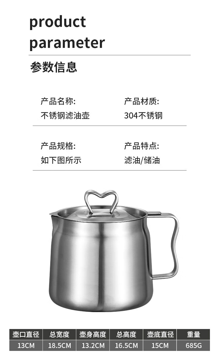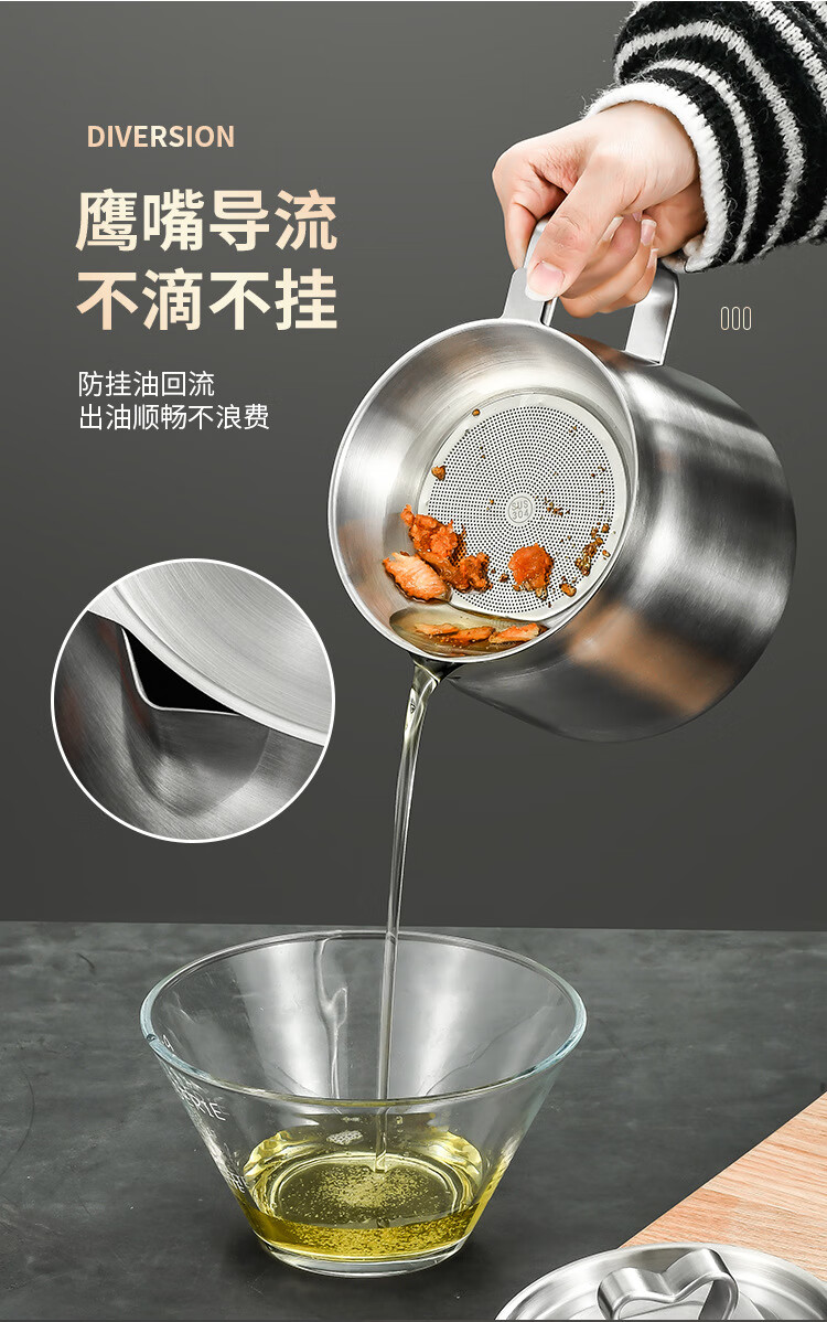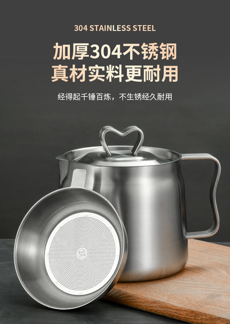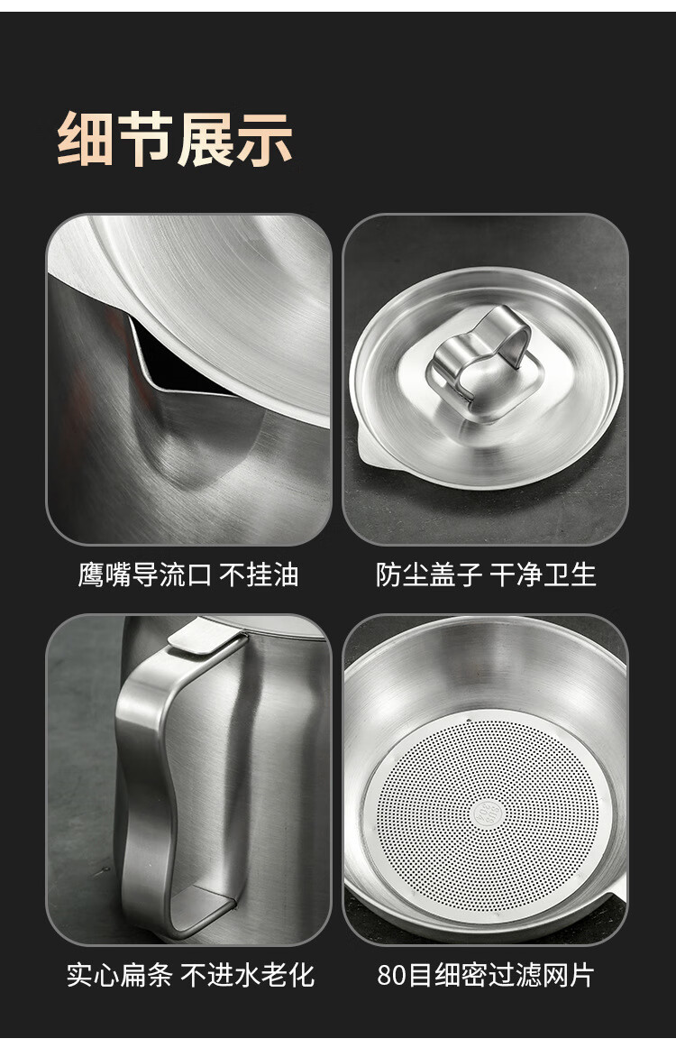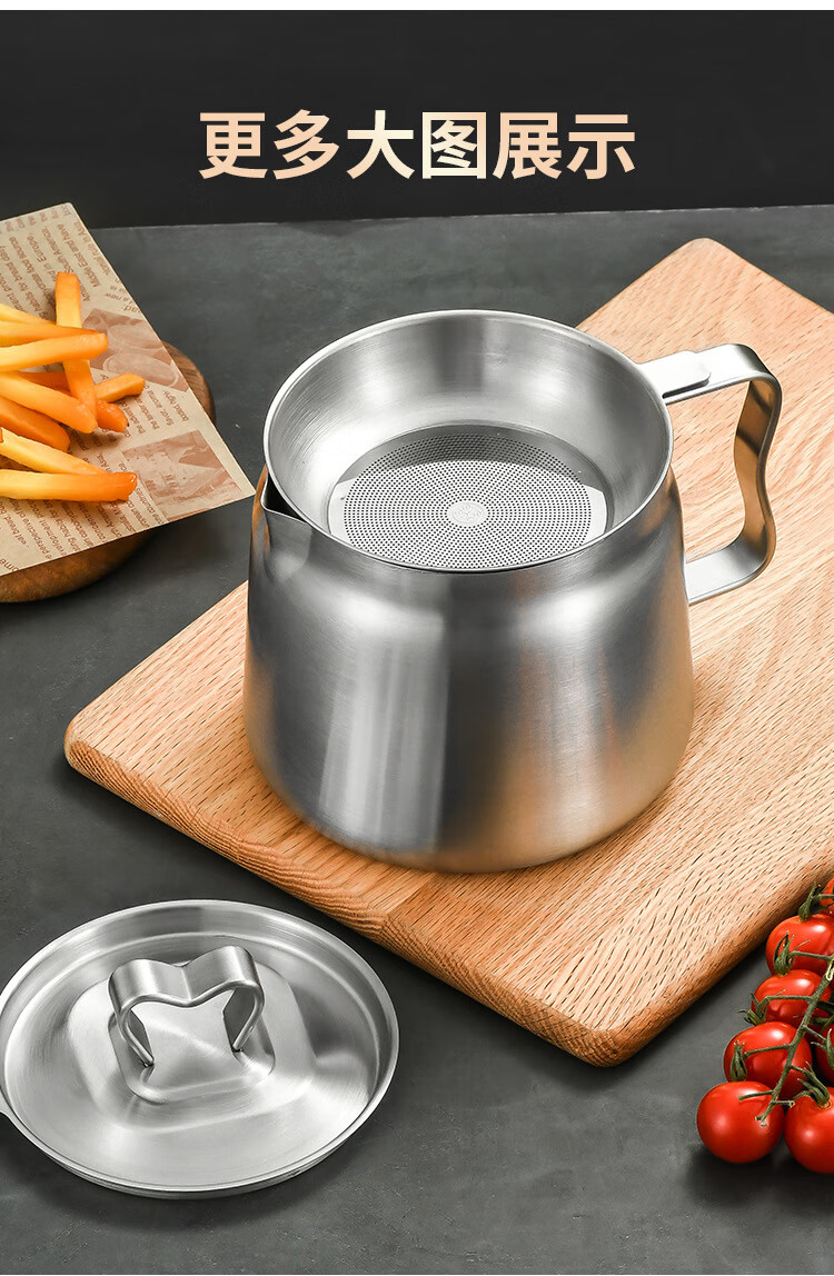• 商品名称:悍路304不锈钢滤油壶家用过滤网大容量油壶滤渣储油带盖装油罐 2000ml 滤油壶/个